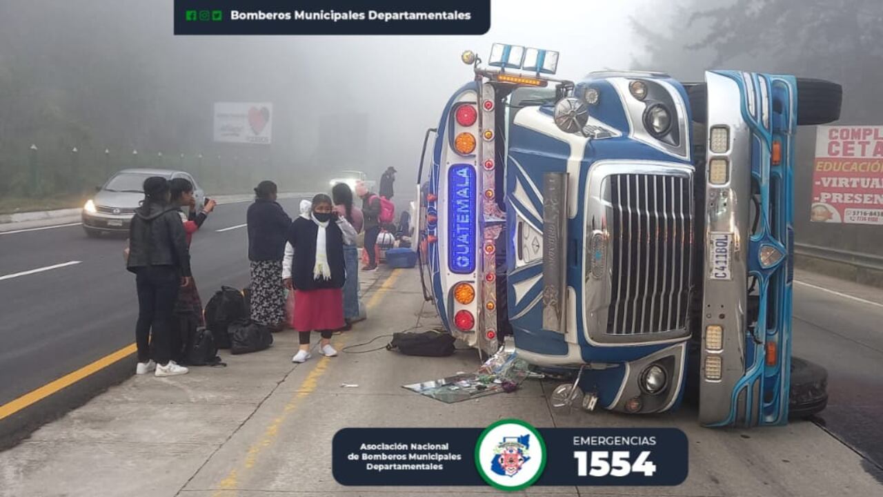Un bus extraurbano de los transportes Marquensita que de la Ciudad de Guatemala se dirigía a San Marcos, volcó la mañana de este miércoles 26 de abril en el kilómetro 85 de la ruta interamericana, en jurisdicción de Tecpán, Chimaltenango, reportaron los Bomberos Municipales Departamentales.