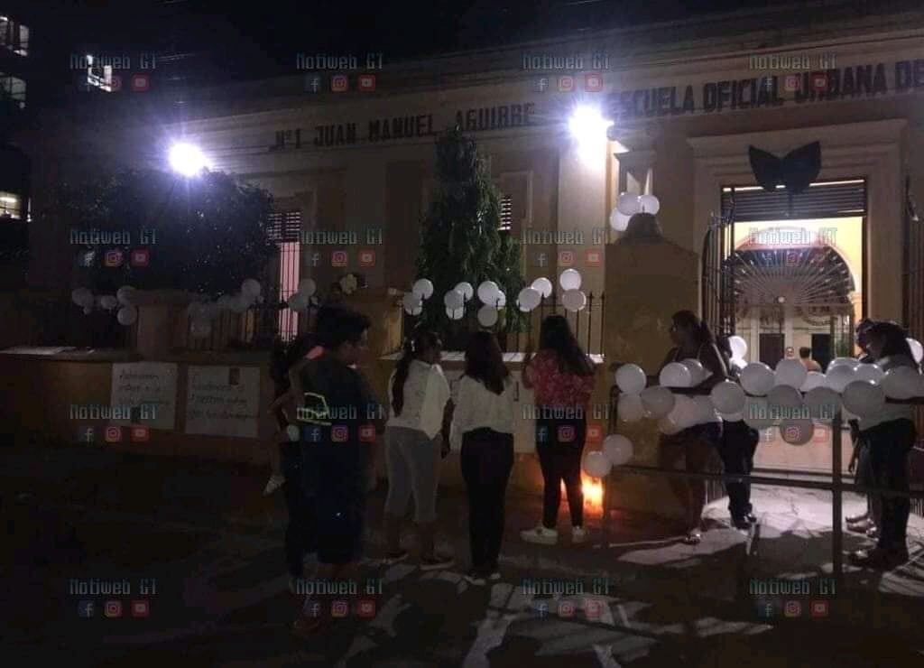 Vecinos, amigos y familiares de Kimberly Gómez, la niña de cinco años que falleció luego de que el techo de la escuela en donde recibía clases le cayera encima, colocaron globos blancos y velas en la fachada de la Escuela Juan Manuel Aguirre, en Chiquimula, lugar donde ocurrió la tragedia.