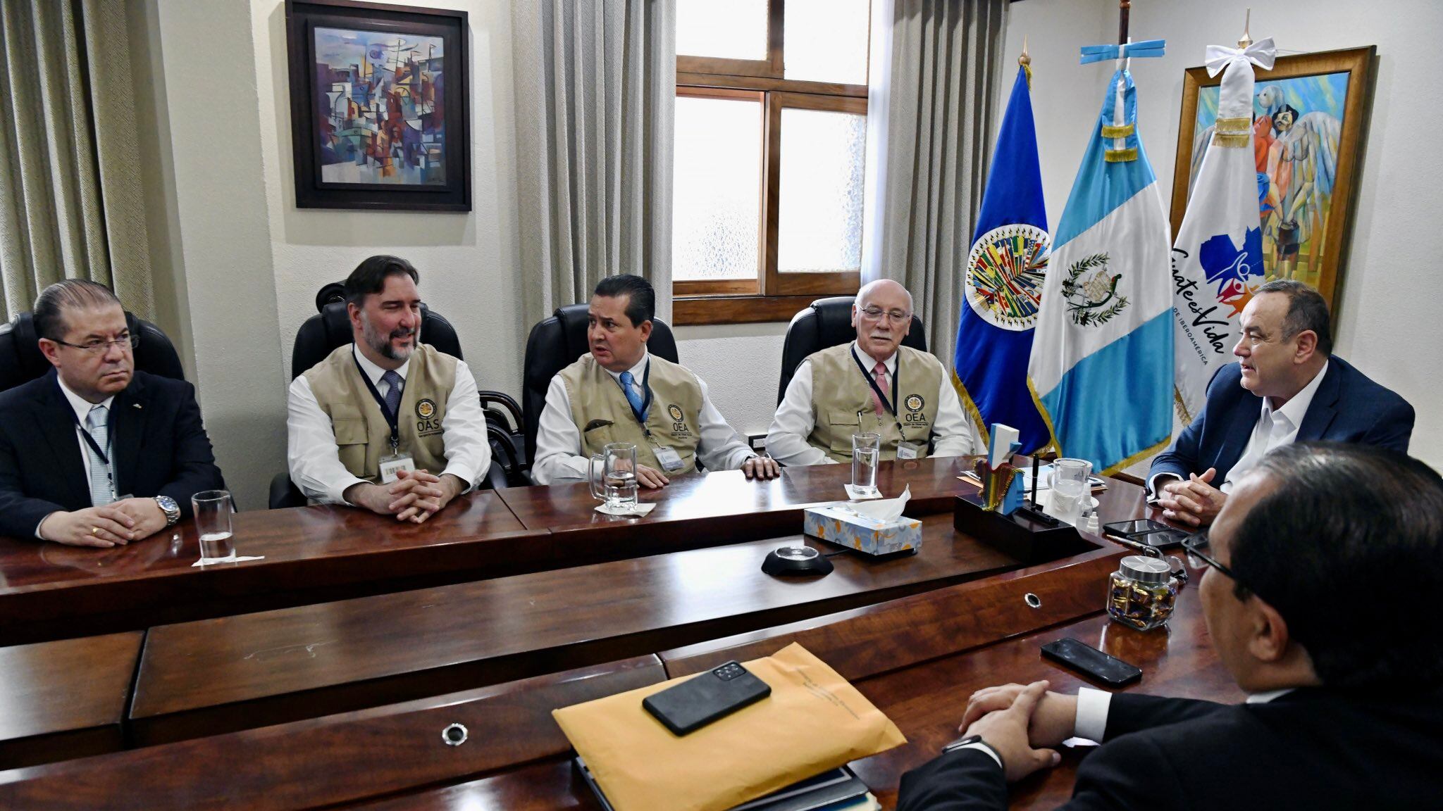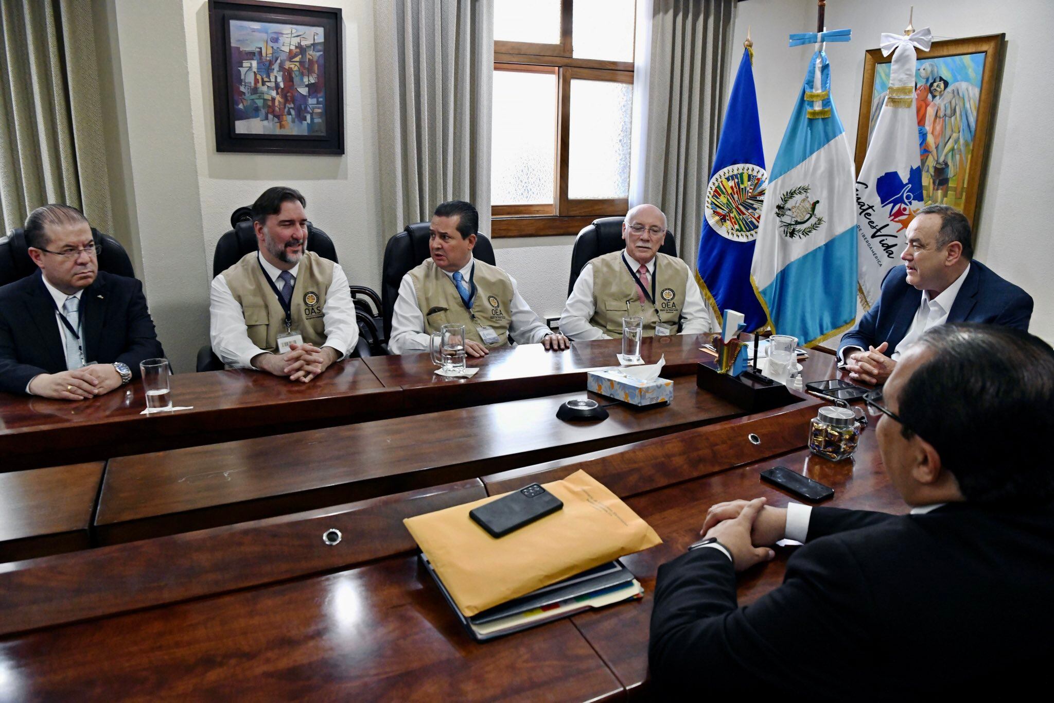El Presidente Alejandro Giammattei, anunció este miércoles 10 de mayo que se reunió con los miembros de la Misión de Observación Electoral de la Organización de los Estados Americanos (OEA), encabezada por el Embajador Eladio Loizaga Lezcano, ex canciller del Paraguay.