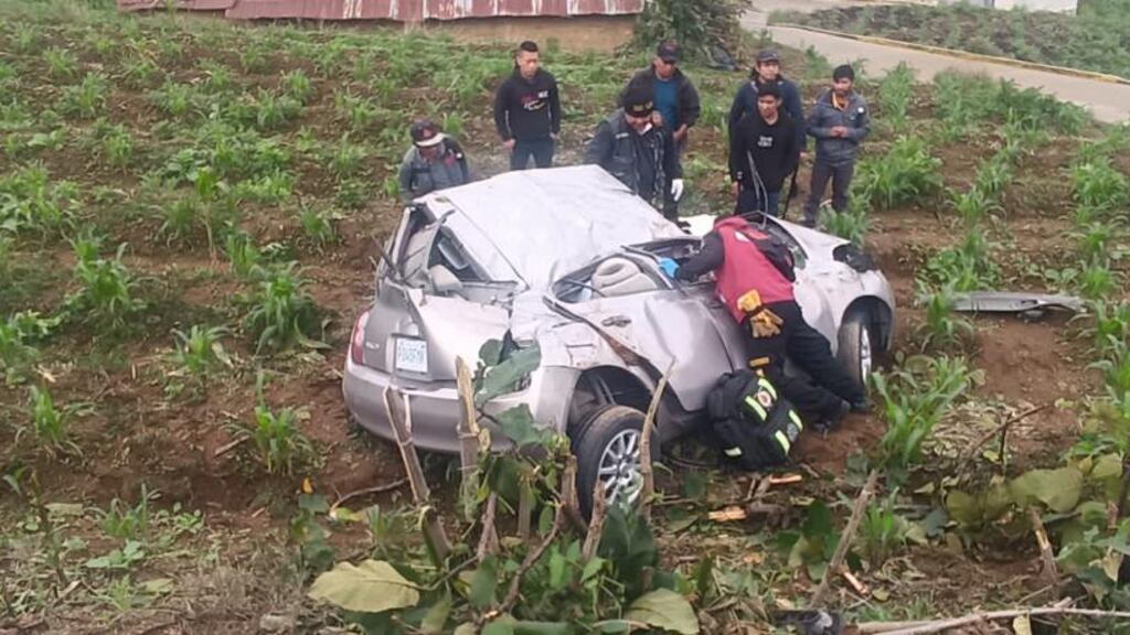 El primer accidente ocurrió en el kilómetro 181, donde el conductor de un vehículo gris tipo sedán perdió el control y cayó a una hondonada, sobre un terreno con sembrados. El automóvil sufrió daños significativos debido a las vueltas que dio y el conductor quedó atrapado entre los hierros del carro, lo que provocó su muerte.