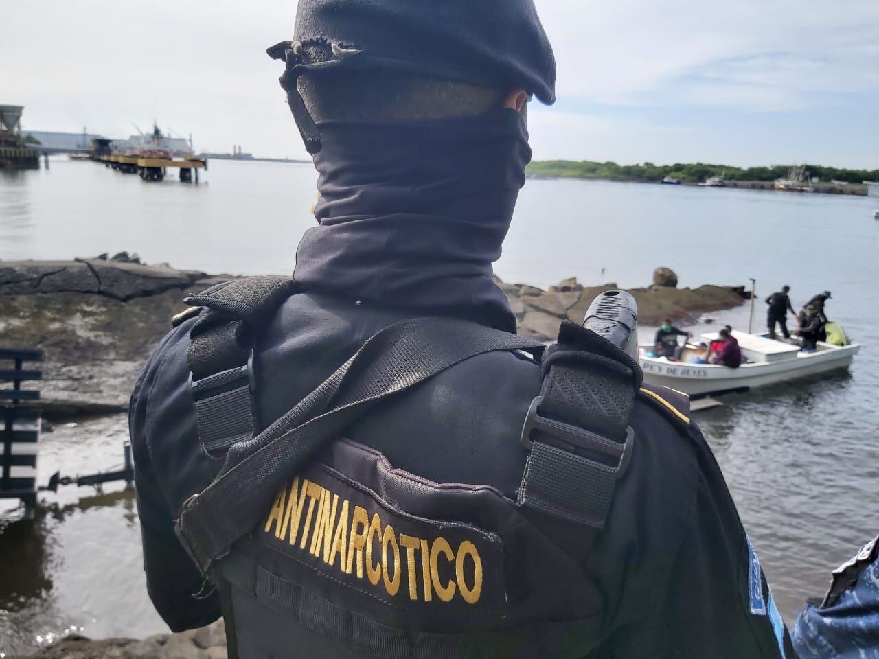 Las Fuerzas de Seguridad localizaron en la embarcación a dos personas que se identificaron como guatemaltecas, quienes trasladan 45 tulas que aparentemente contienen estupefacientes.