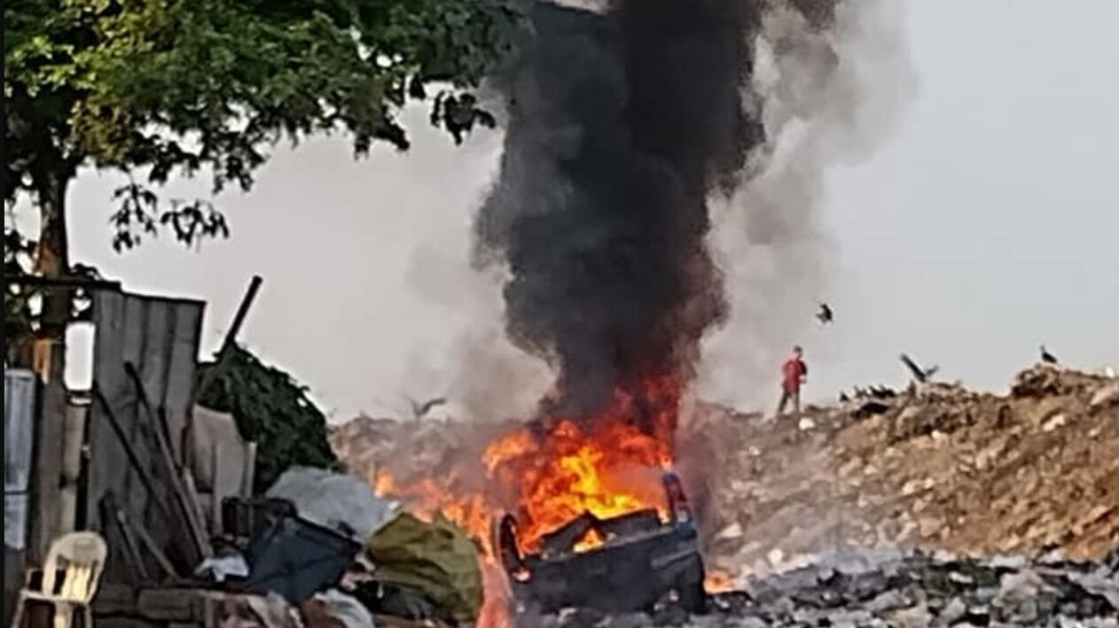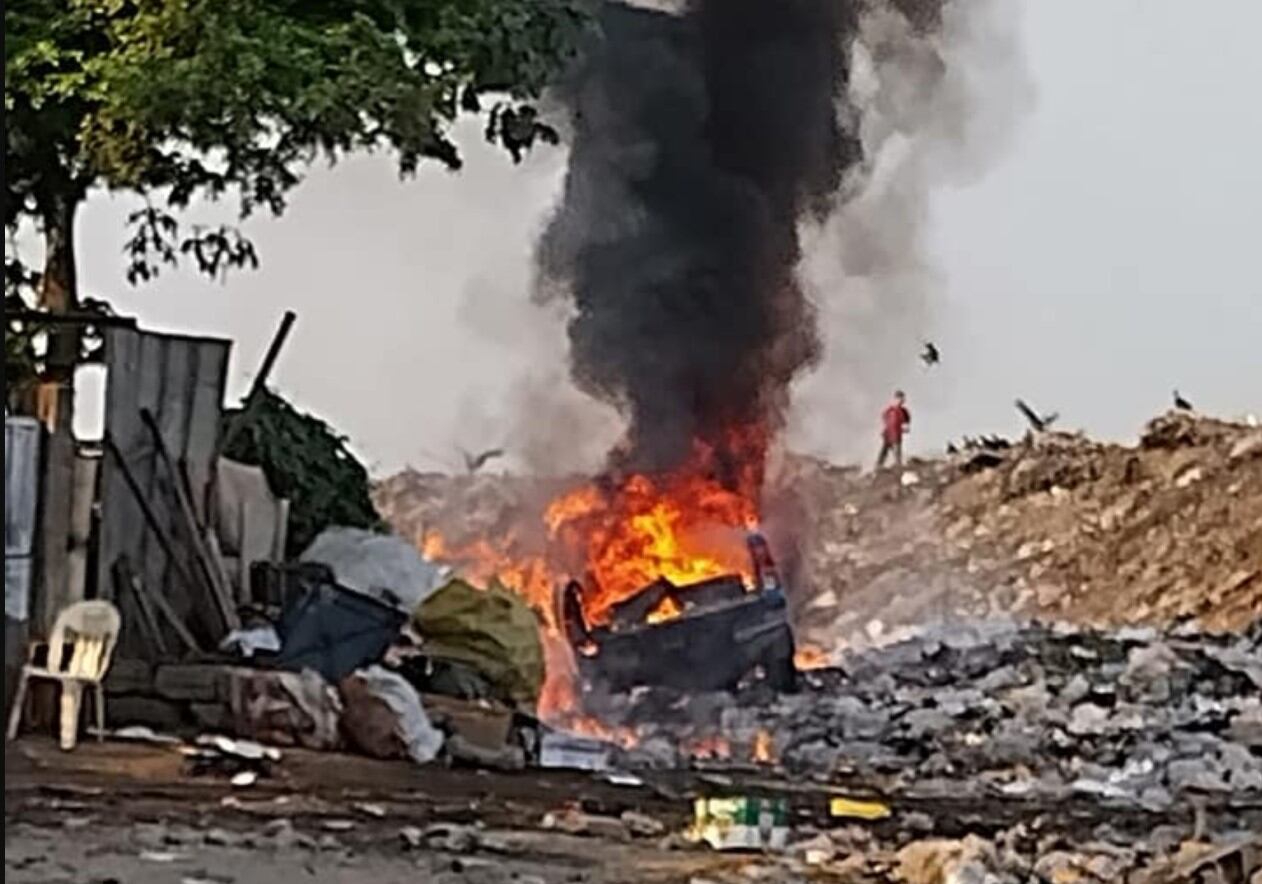 Una turba incendió una patrulla de la Policía Nacional Civil (PNC) la mañana de este viernes 19 de mayo a orillas del río Suchiate, en Ayutla, San Marcos, en descontento con las Fuerzas de Seguridad.