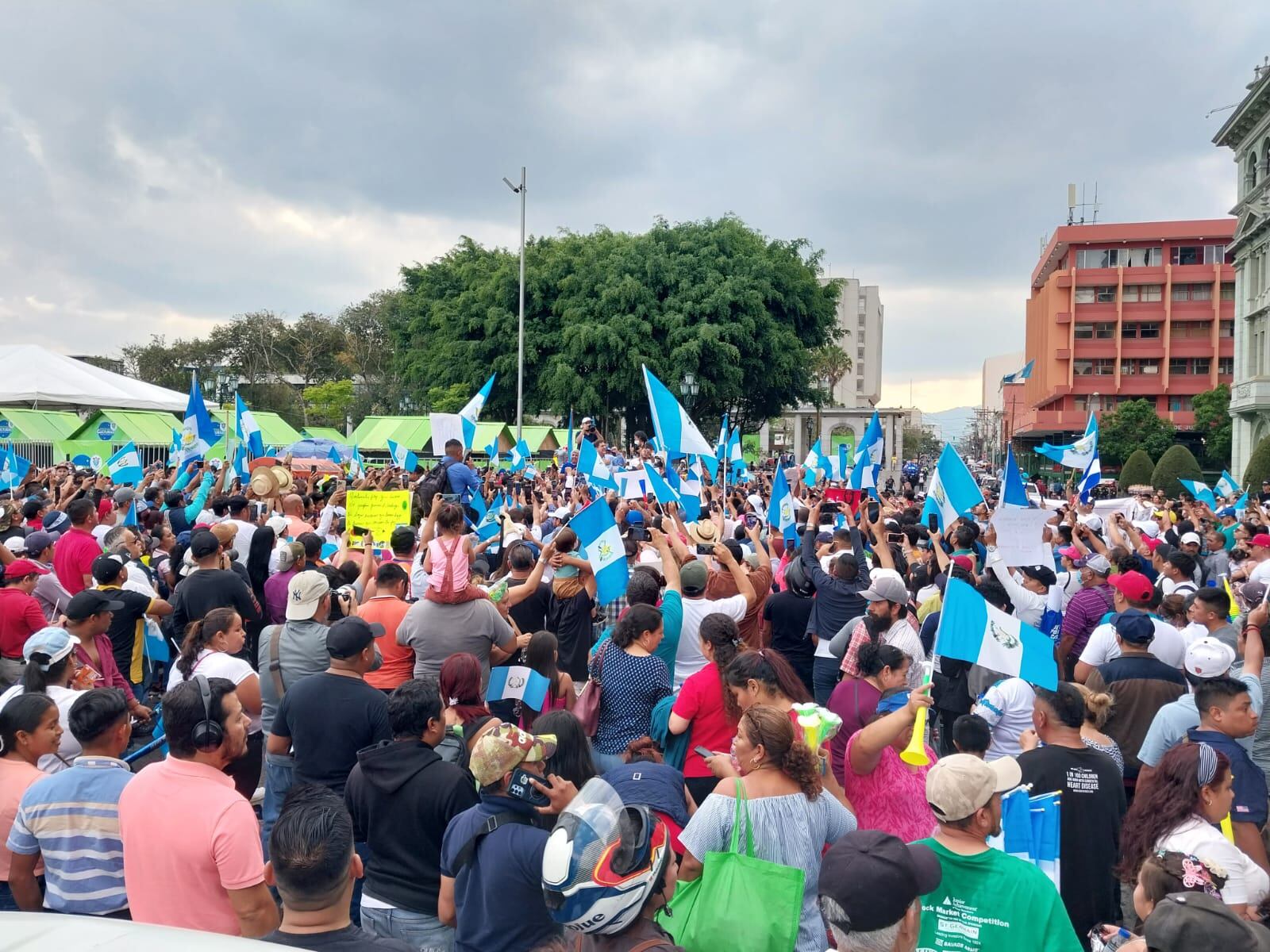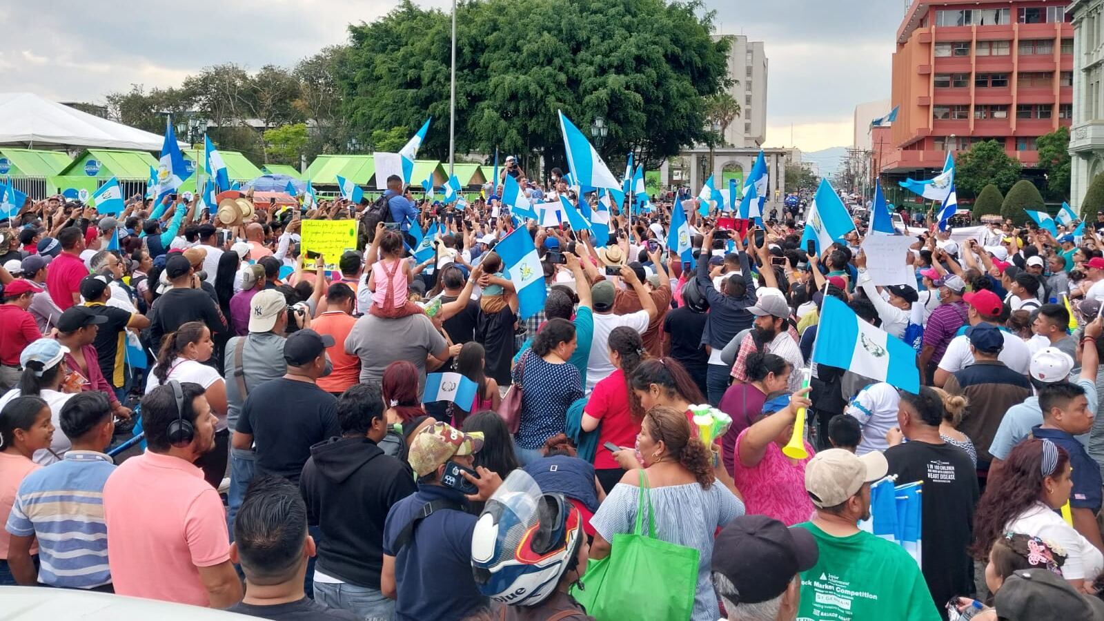 Pineda, agitando una bandera de Guatemala y rodeado de un grupo de personas que lo protegían de los seguidores, caminó desde la CC hacia el Palacio. En ese lugar se detuvo y entonó el Himno Nacional junto a sus seguidores.