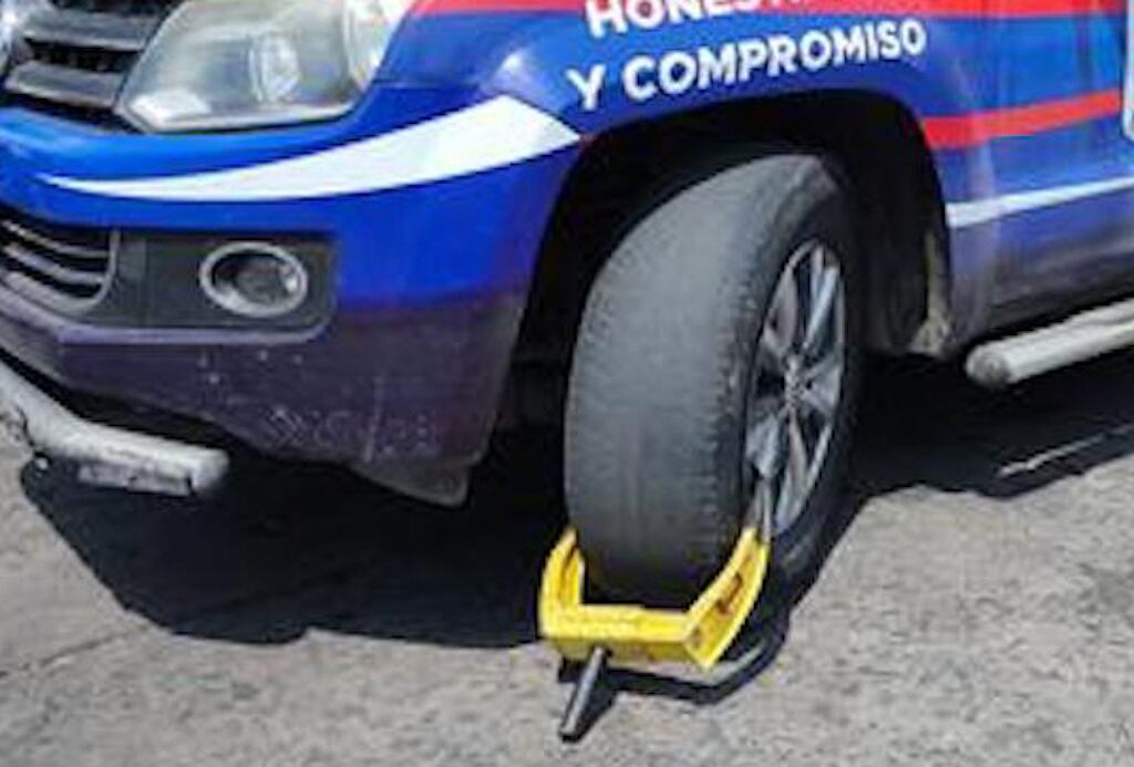 El automóvil, que mostraba fotografías del legislador que busca una curul con el partido Nosotros, se estacionó en un lugar prohibido, por lo que las autoridades de tránsito le colocaron un cepo, según una publicación de La Voz de Xela.