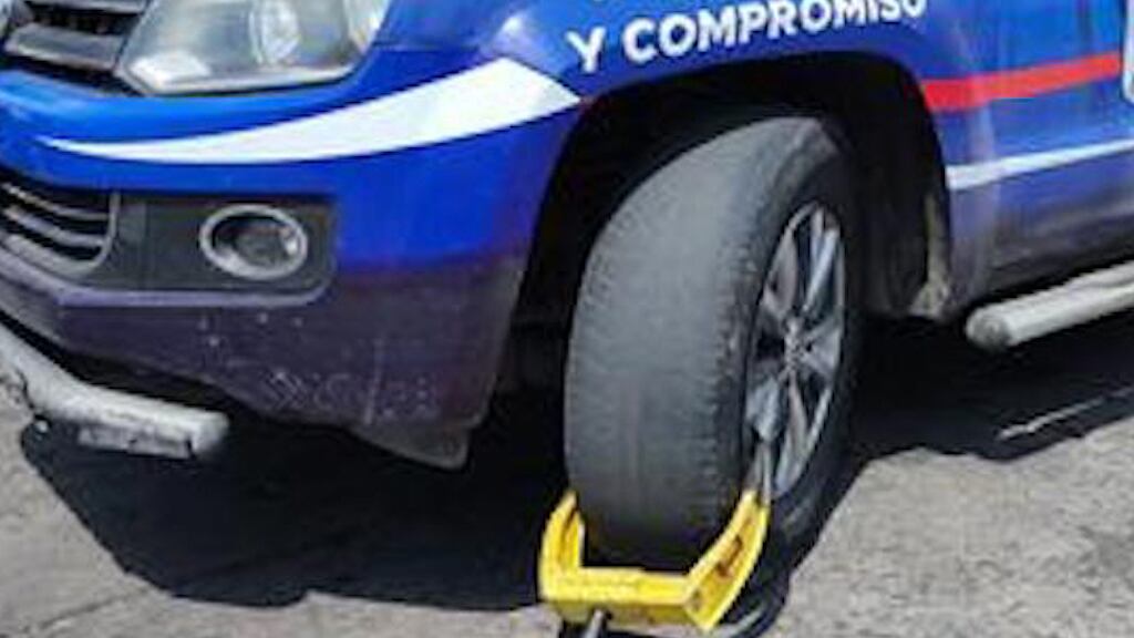 El automóvil, que mostraba fotografías del legislador que busca una curul con el partido Nosotros, se estacionó en un lugar prohibido, por lo que las autoridades de tránsito le colocaron un cepo, según una publicación de La Voz de Xela.