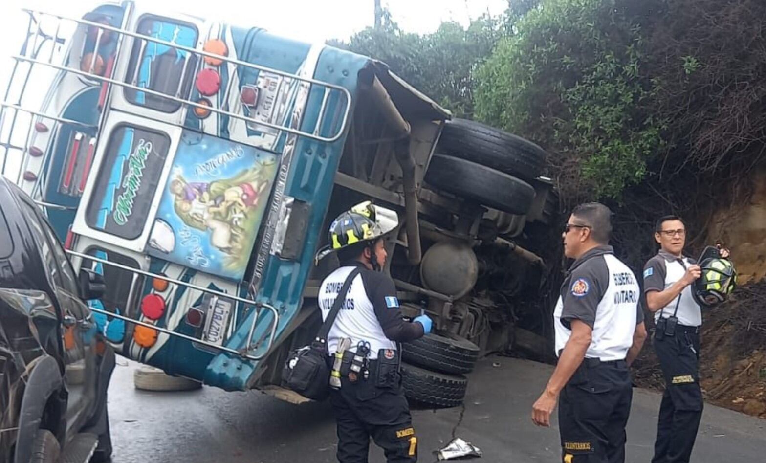Tras volcar el bus cayó sobre sobre un automóvil, por lo que al lugar acudieron los bomberos quienes atienden en el lugar a 15 personas y trasladan a tres más a la emergencia del Hospital Nacional de Chimaltenango.