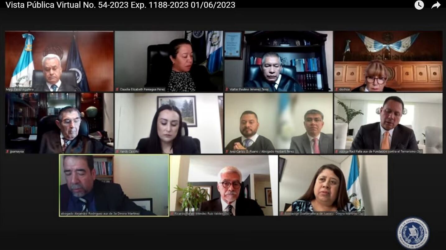 Este jueves 1 de junio se realizó una vista pública en la Corte de Constitucionalidad (CC) de forma virtual, por el antejuicio que promovió la Fundación contra el Terrorismo contra el juez Carlos Ruano, Vocal del Tribunal Noveno de Sentencia Penal.