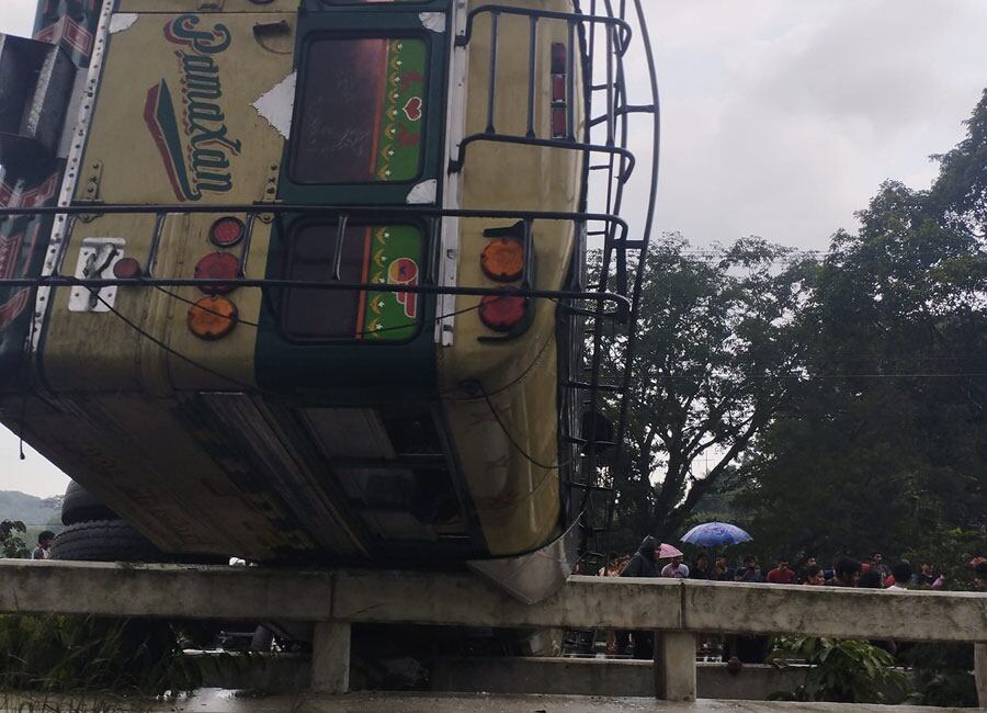 Elementos de Dirección General de Protección y Seguridad Vial (Provial) acudieron al lugar, en donde se constató que la colisión del bus extraurbano provocó varios daños en la baranda del puente antes mencionado.