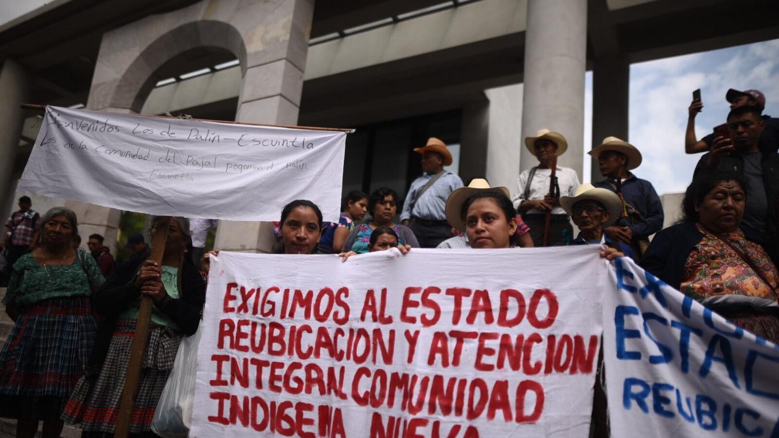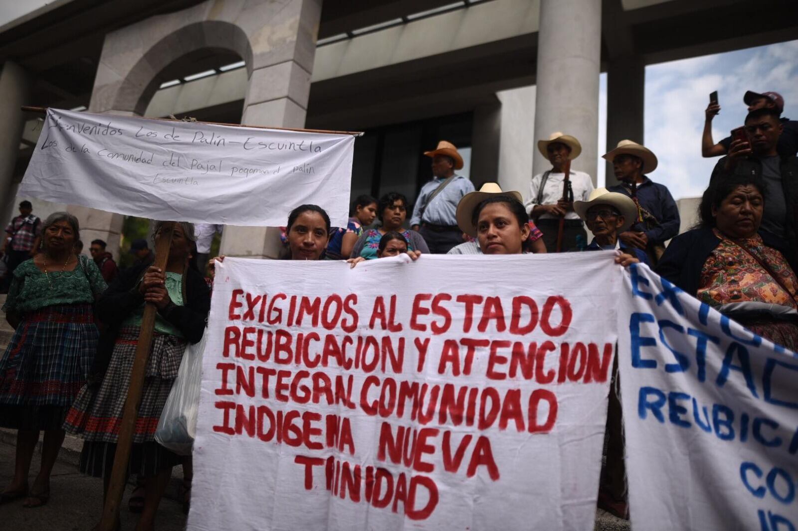 Campesinos de la comunidad indígena Nueva Trinidad, que fueron afectados por la erupción del volcán de Fuego hace cinco años, protestaron este miércoles 7 de junio frente a Casa Presidencial para entregar un memorial y exigir la compra urgente de una finca para la reubicación de 163 familias.