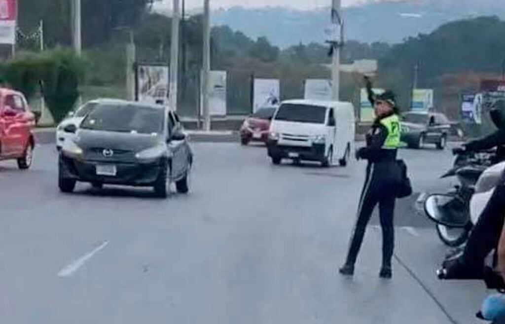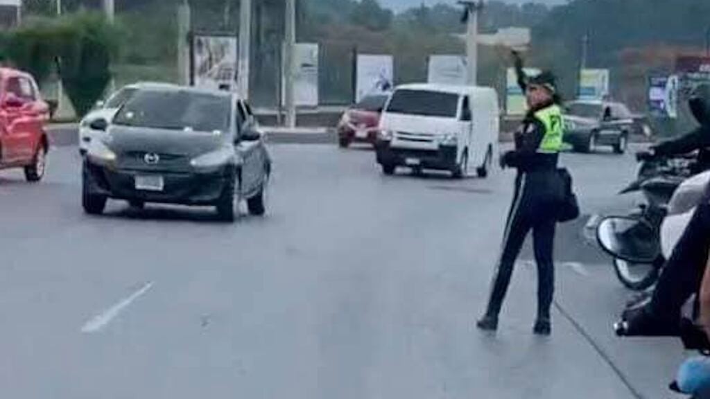 El video en cuestión fue compartido en TikTok por un usuario que se encontraba en las cercanías mientras la agente de la PMT desempeñaba sus tareas. En las imágenes, se puede observar a la policía regulando el tráfico y permitiendo el paso de otros conductores en el bulevar el Frutal, jurisdicción de Villa Nueva y San Miguel Petapa.