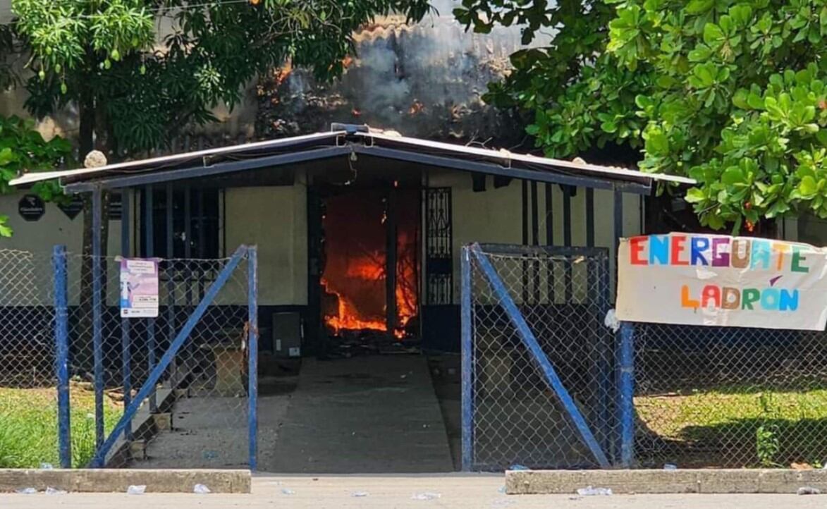 “Condenamos el vandalismo, la destrucción de instalaciones y vehículos destinados al servicio de la población y al robo de equipos, ocurridos durante el ataque contra la oficina”, señaló.