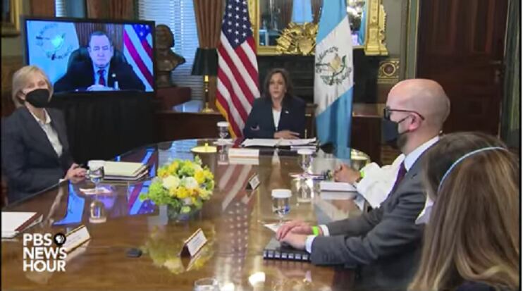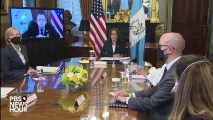 Según Presidencia, la vicemandataria estadounidense subrayó el liderazgo de Giammattei, que fue crucial para replicar el modelo de las oficinas de movilidad segura en Costa Rica, Colombia y México.