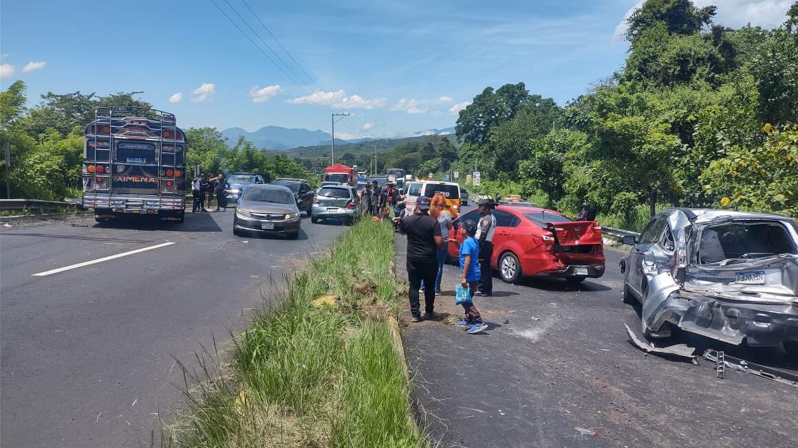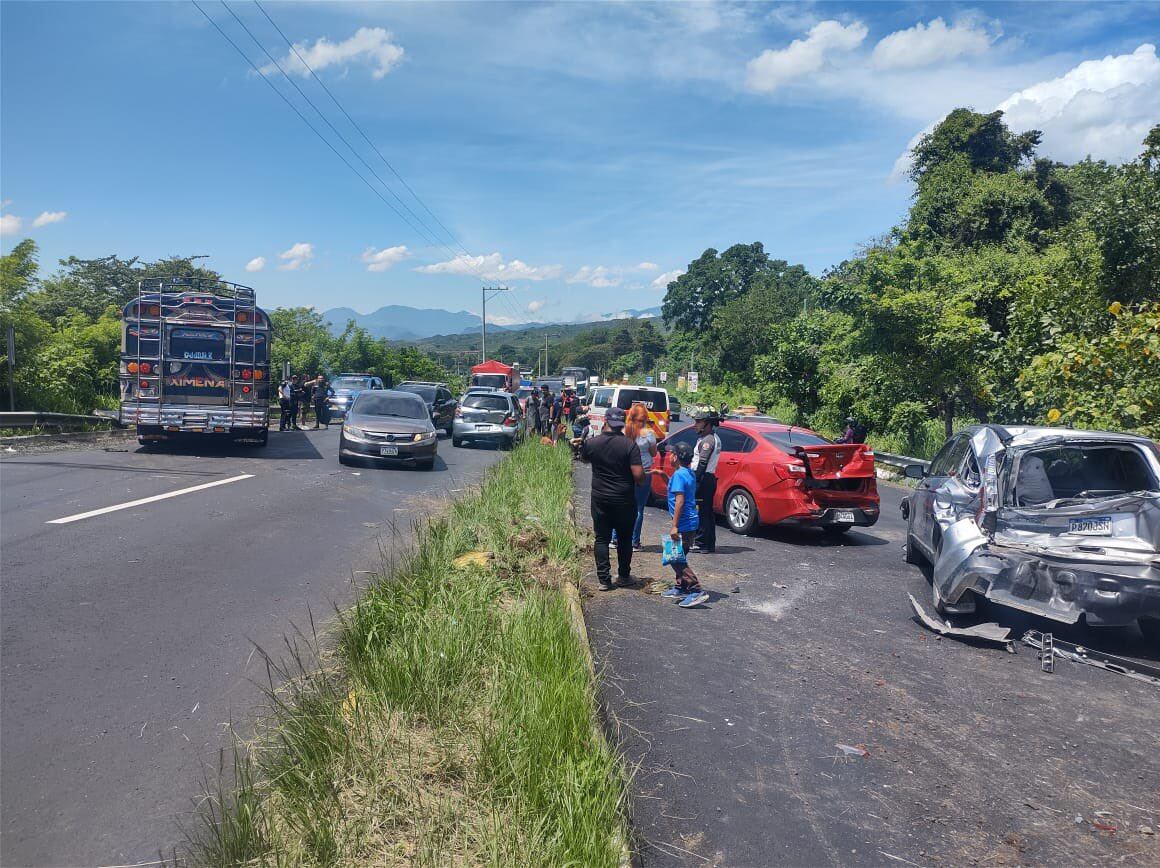Un accidente múltiple se registró ayer en horas de la tarde en el área conocida como “bajada de Las Cañas”. En la ruta que conduce de Santa Lucía Milpas Altas hacia el municipio de Antigua Guatemala, Sacatepéquez.