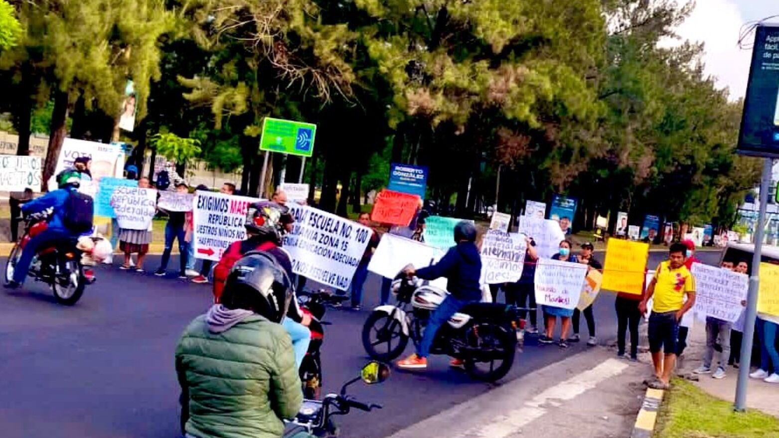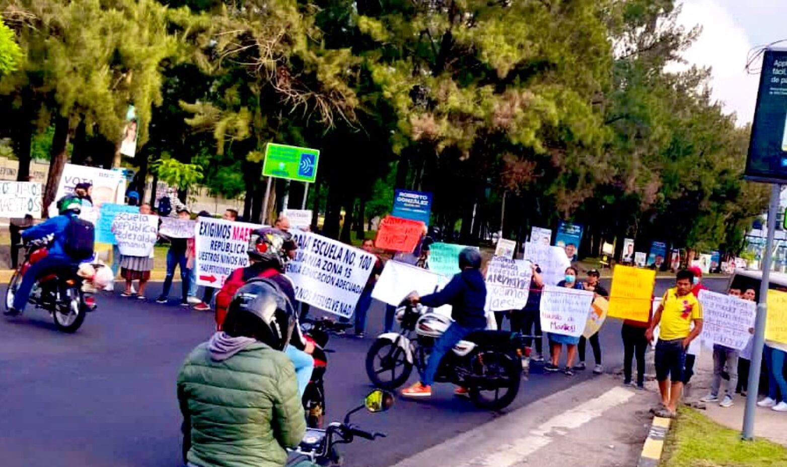 Padres de familia de la Escuela República Federal de Alemania, en la zona 15, bloquean el bulevar Vista Hermosa, además de la 3ra. calle y 15 avenida de la zona 15, la mañana de este lunes 19 de junio, informó el director de comunicación de Emetra, Amílcar Montejo.
