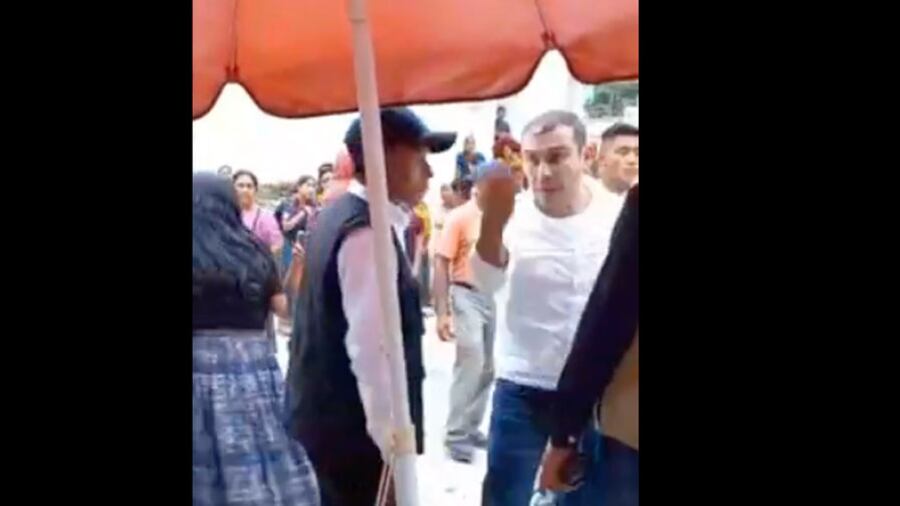 En este caso, una persona que porta una camisa del partido Valor y en cuya espalda está inscrita la leyenda “Alta Verapaz Moll”, tiene un fuerte intercambio de palabras con un individuo que se encontraba en un puesto de frutas.