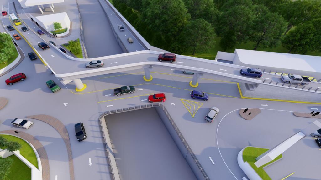 La obra contará con un puente aéreo donde los vehículos que pasan por Muxbal y van para Cristo Rey y Puerta Parada pasen sobre dicha obra y así mejorar el tránsito sobre carretera a El Salvador.