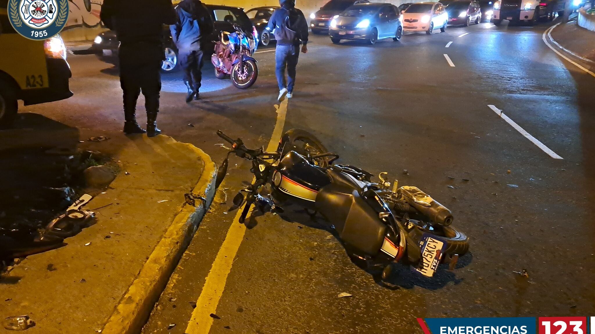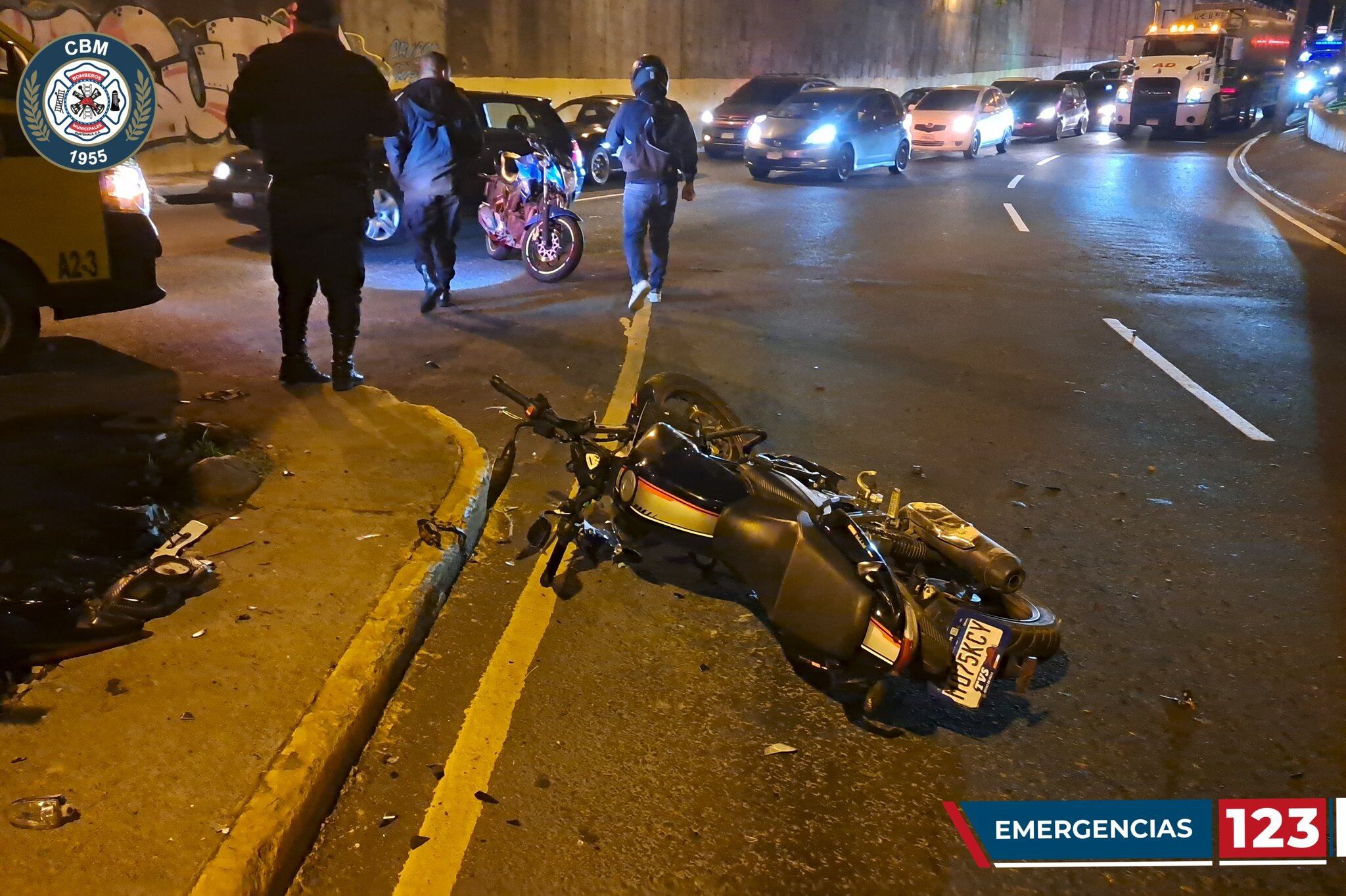 Los Bomberos Municipales compartieron imágenes luego del accidente en moto que ocurrió sobre la 7a avenida, de la zona 13, bulevar Liberación.