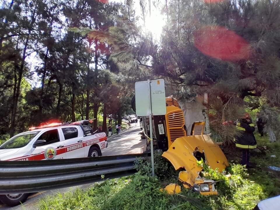 El bus viajaba desde Jalapa hacia Antigua Guatemala y volcó a la altura del kilómetro 37, área conocida como bajada de Las Cañas.