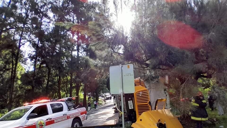 Cuerpos de socorro reportan la muerte de 3 personas, luego de que un bus que supuestamente trasladaba excursionistas se accidentó en la bajada de Las Cañas hacia Antigua Guatemala.