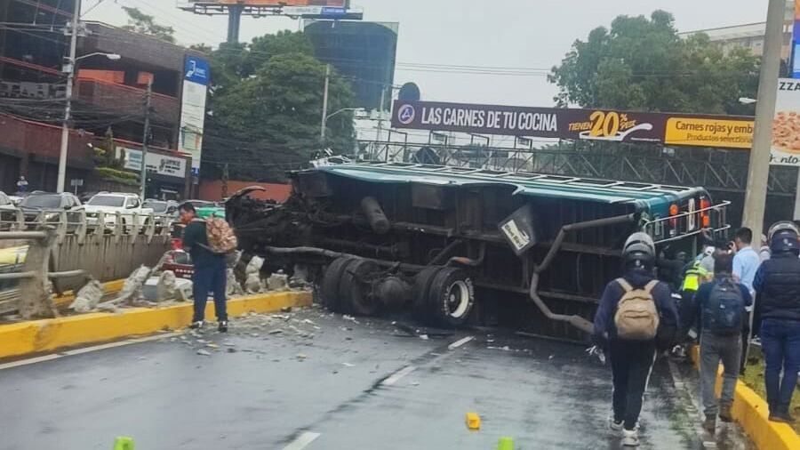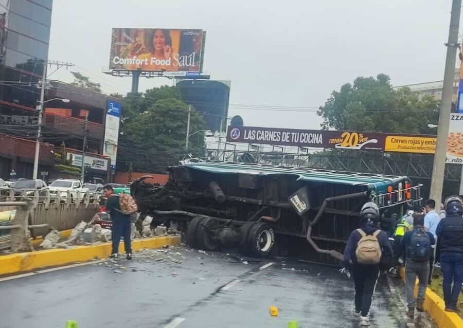 Un bus del transporte extraurbano fue el protagonista de un fuerte accidente vehicular ocurrido en el bulevar Los Próceres y 18 avenida de la zona 10.
