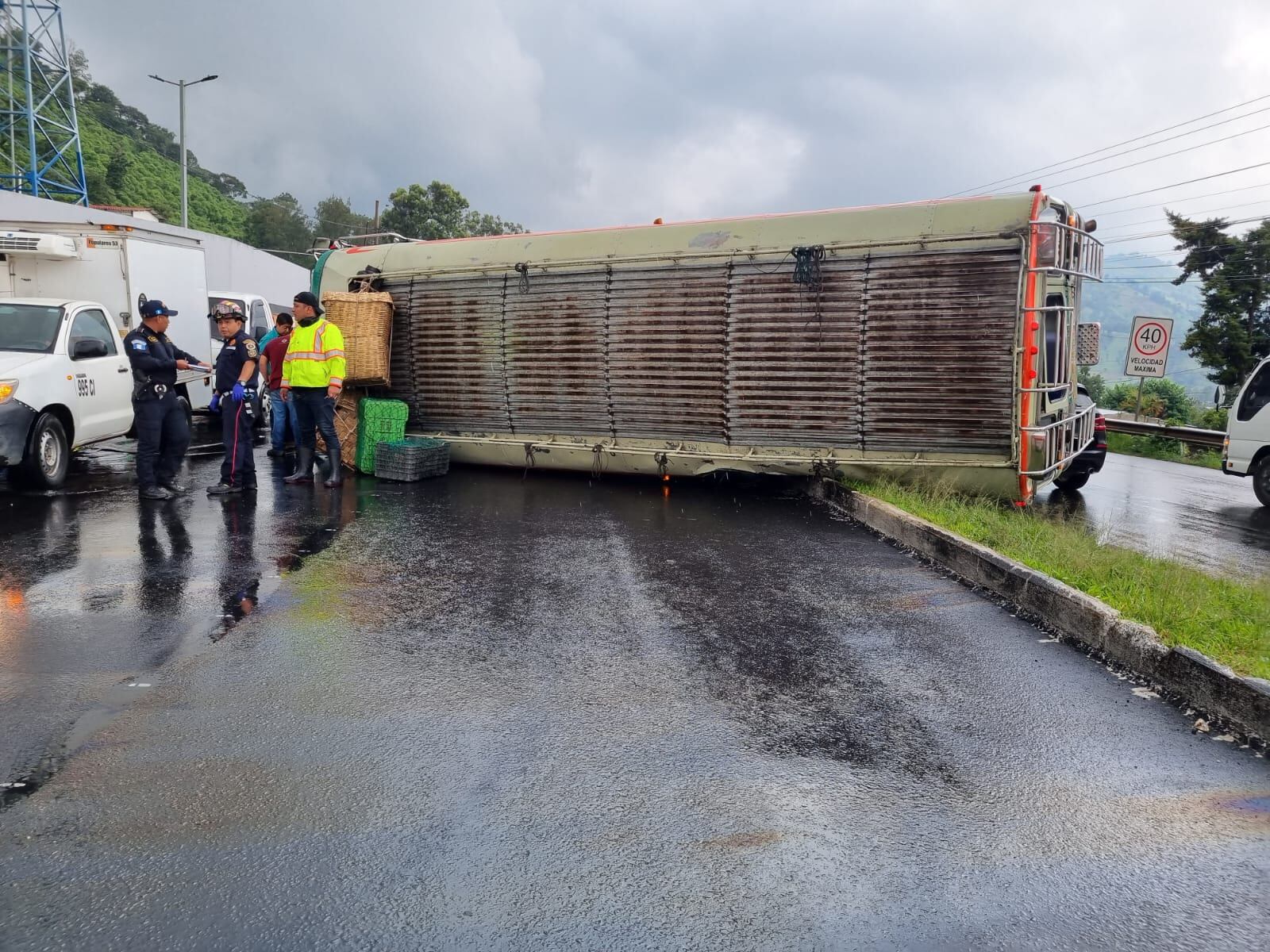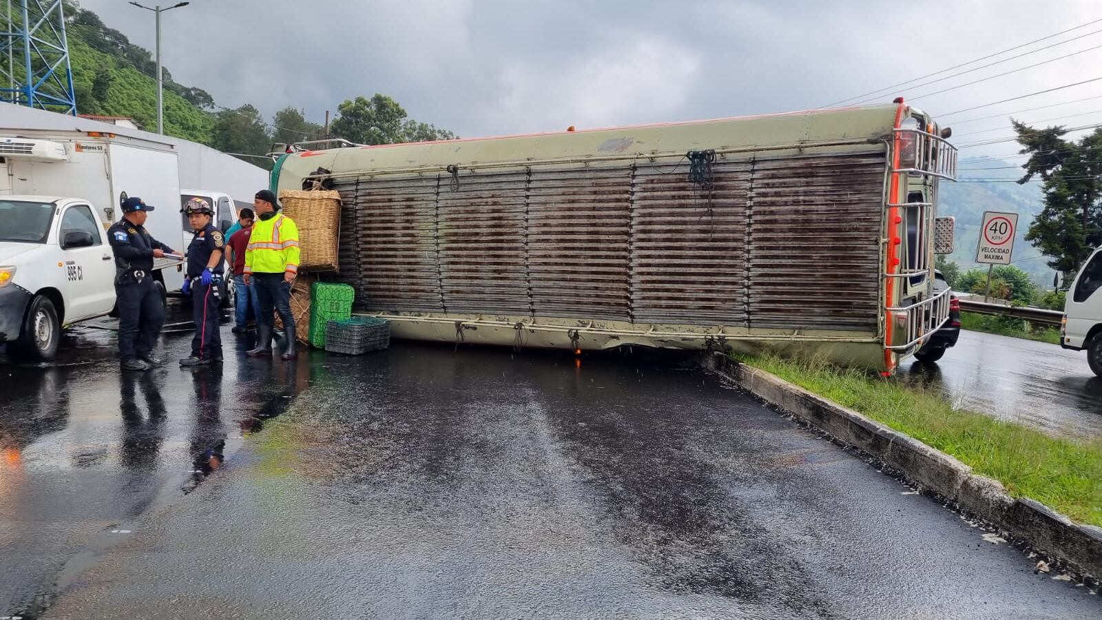 El vehículo volcado provocó que quedaran obstruidos ambos carriles con dirección al occidente, por lo que se habilitó un carril reversible.