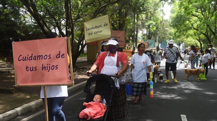 Durante la marcha, muchas de las trabajadoras del hogar manifestaron que se enfrentan a una situación de bajos ingresos por su labor. Además, que ese sector laboral se caracteriza por la falta de formalidad, la falta de protección social y salarios bajos.