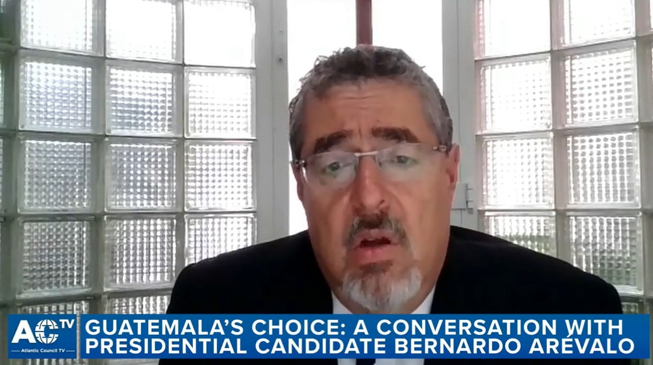 Arévalo compareció al conversatorio de Atlantic Council, de forma virtual en el que se excusó de no haber viajado a la capital estadounidense, argumentado que recibieron información sobre posibles capturas contra los miembros de su partido, por lo que decidió permanecer en Guatemala para estar atento a cualquier accíón legal.