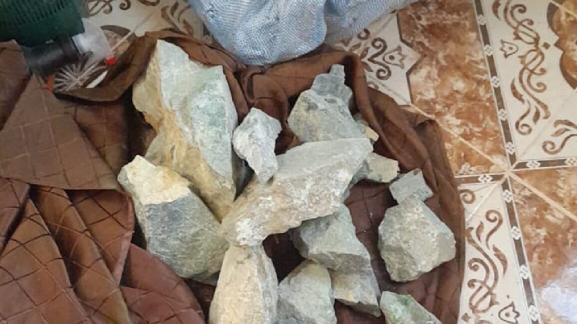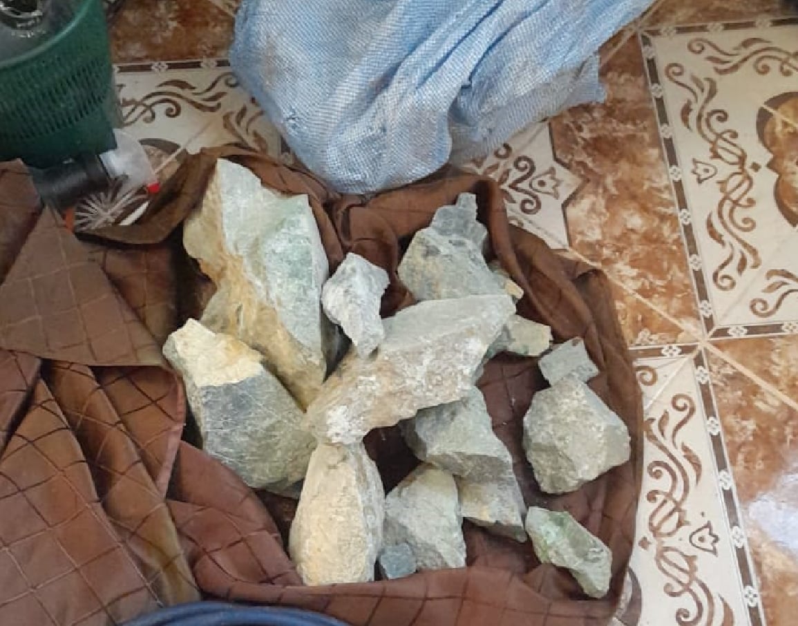 Se encontraron aproximadamente 1.95 libras de jade en el costal, presumiblemente destinadas para fines de muestreo. Y adicionalmente, se confiscaron 121.55 libras de jade listas para su comercialización ilegal.
