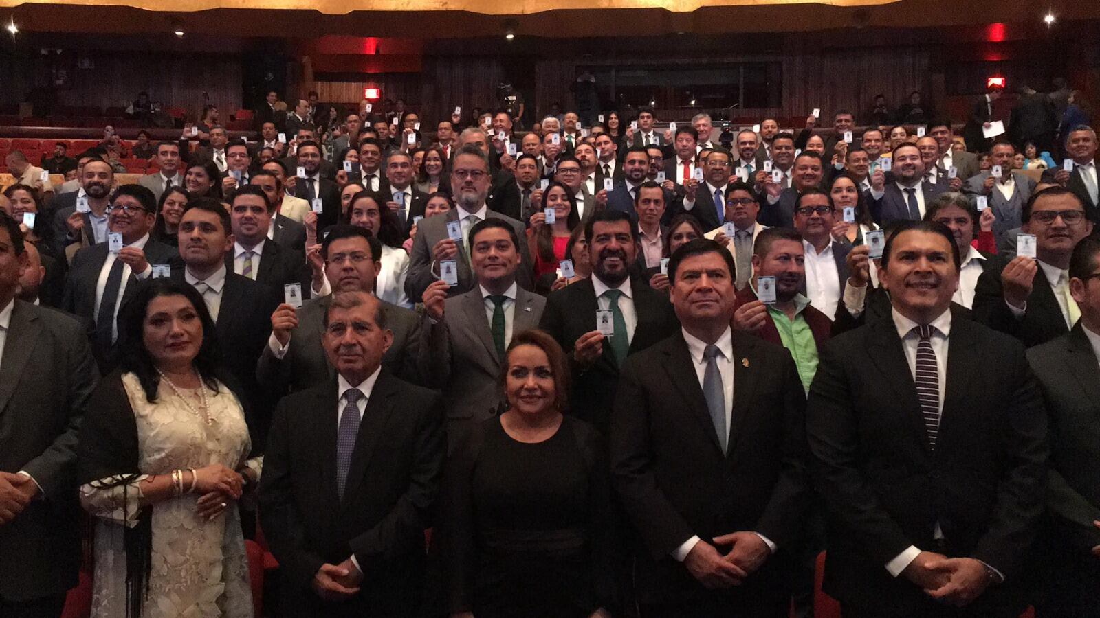 En la Gran Sala Efraín Recinos, del Centro Cultural Miguel Ángel Asturias, se desarrolla la entrega de credenciales con la participación de las autoridades electorales, miembros de las misiones de observación electoral y los diputados electos en las urnas el pasado 25 de junio.