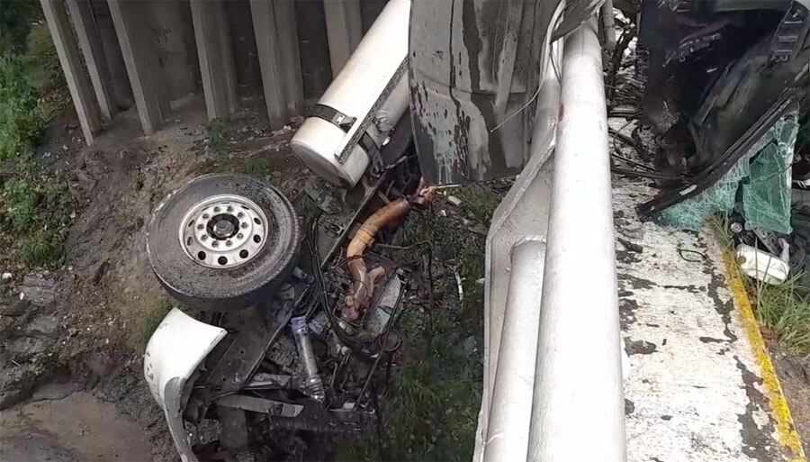 En dicho video se observa cómo el piloto del vehículo del transporte pesado pierde el control y se descarrila del inicio del puente para caer en la parte baja de la carretera.