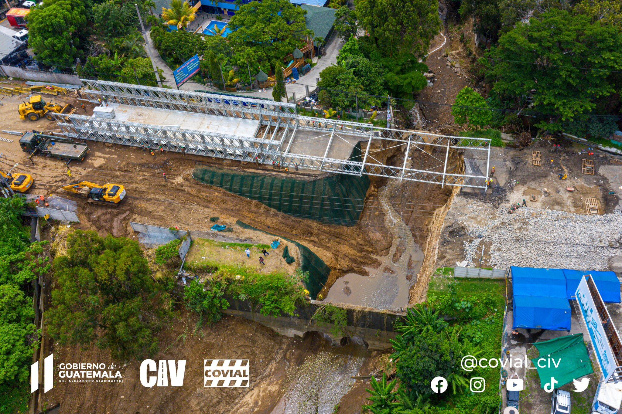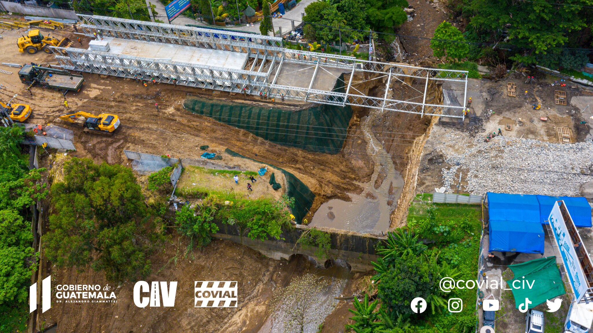 El Cuerpo de Ingenieros se encuentra en la fase final de la instalación del puente modular temporal en el kilómetro 17.5 de ruta al Pacífico, donde se registró un hundimiento de gran magnitud.
