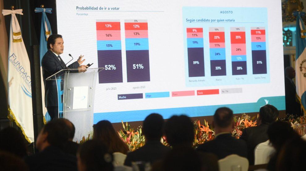 Paul Boteo, analista de la Fundación que presentó la encuesta, indicó que la intención de voto mejoró para ambos candidatos a presidente sobre votos en blanco y nulos, y aunque Torres subió 4% en la intención de voto, Arévalo creció 7%.