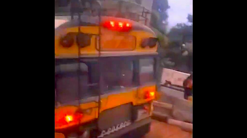 El clip captura la primera complicación que surgió al circular sobre este puente modular, específicamente en una de sus rampas de salida. El incidente fue causado debido al peso del bus y los pasajeros que transportaba, el cual quedó atorado en la rampa de salida, construida con madera.