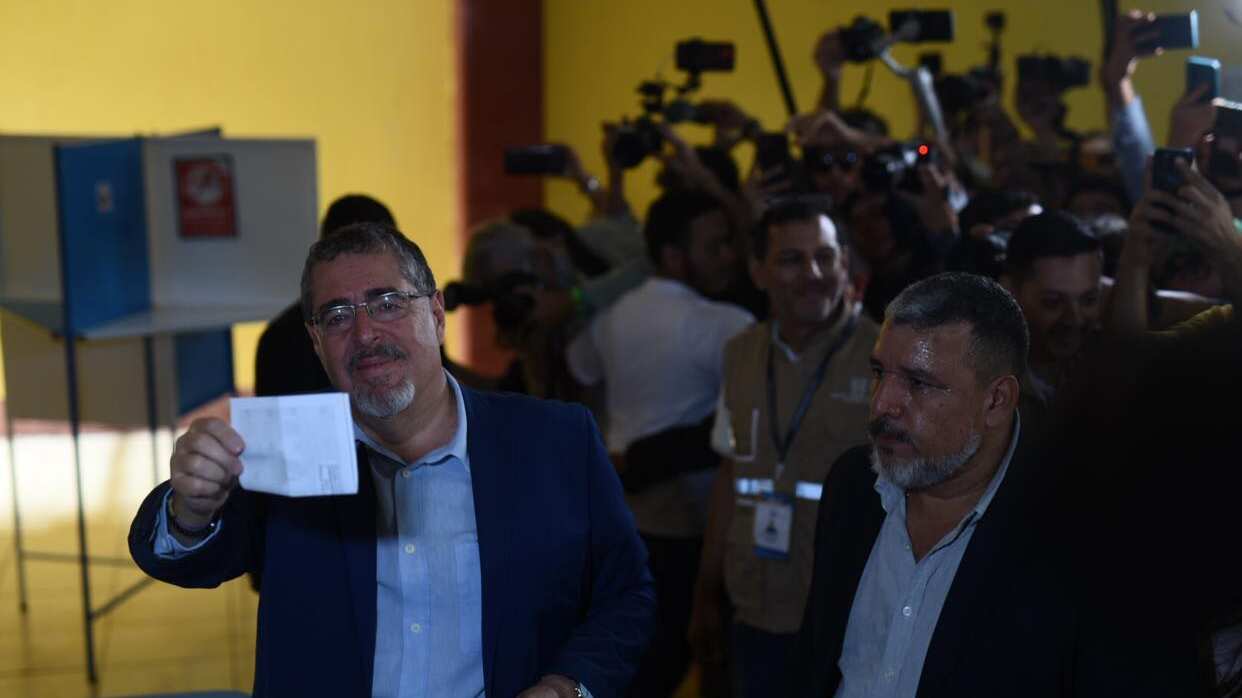 El candidato a la presidencia por el Movimiento Semilla, Bernardo Arévalo, ejerció su derecho al voto en el Colegio La Patria, ubicado en la zona 2. Acompañado por su esposa, Lucrecia Peinado, y la vicepresidenciable Karin Herrera, el presidenciable emitió su sufragio con optimismo.