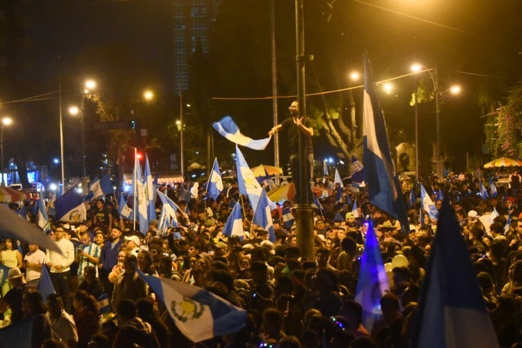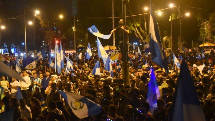 Con banderas de Guatemala, canticos, las bocinas de sus automóviles, entre otros, cientos de guatemaltecos llenaron el Obelisco para celebrar la victoria del binomio presidencial del Movimiento Semilla, Bernardo Arévalo y Karin Herrera en la segunda vuelta electoral.
