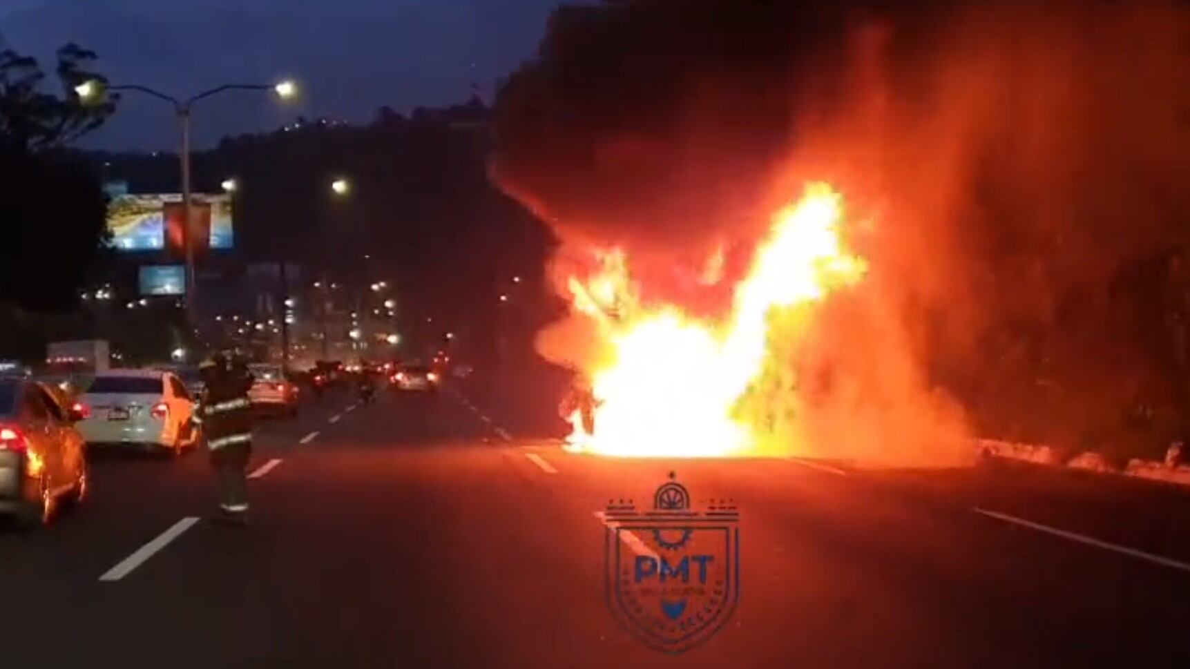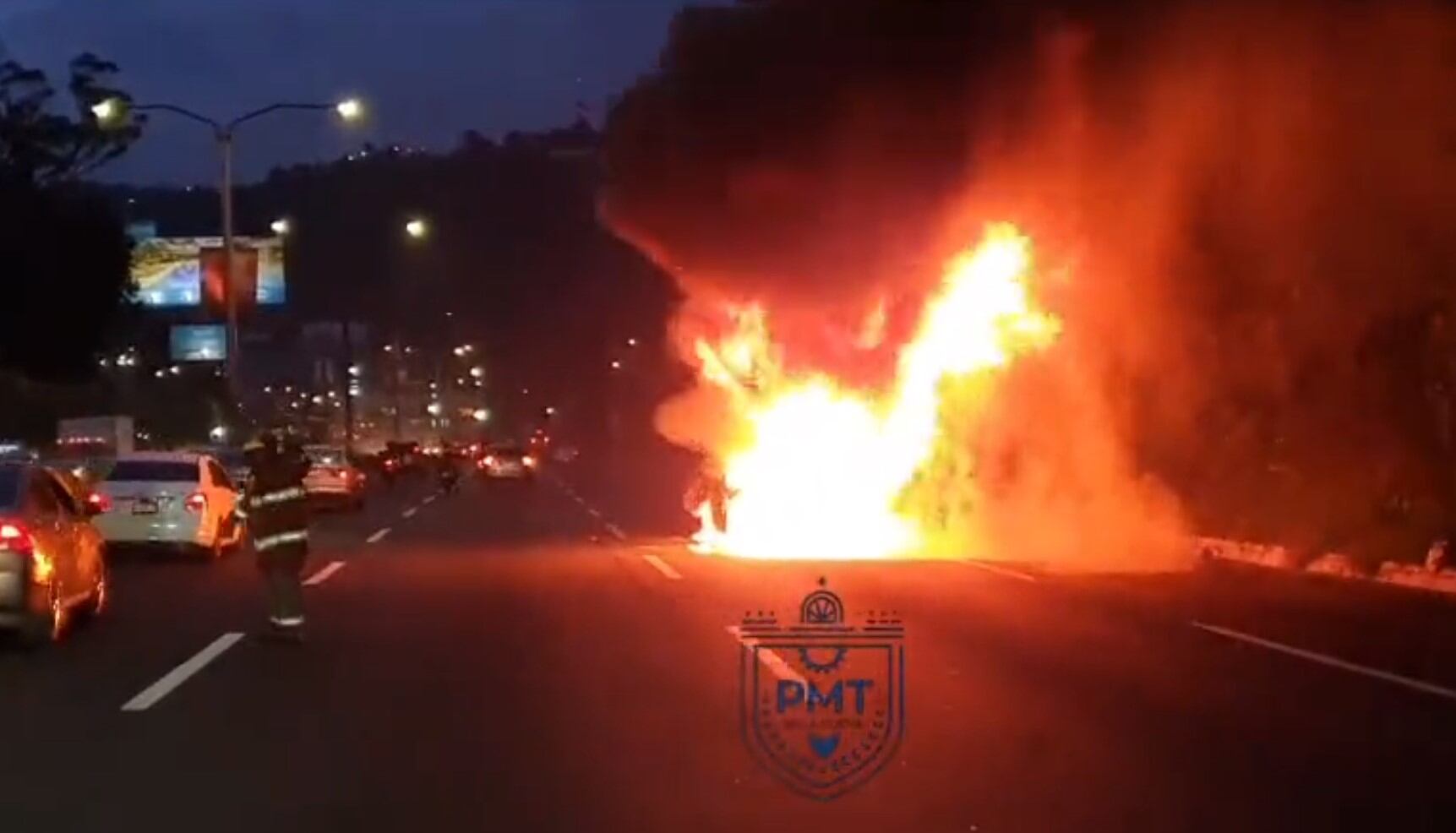 El fuego se extendió por toda la estructura del automotor y las columnas de humo se extendían por el área, por lo cual quedaron bloqueados los tres carriles con dirección al norte.