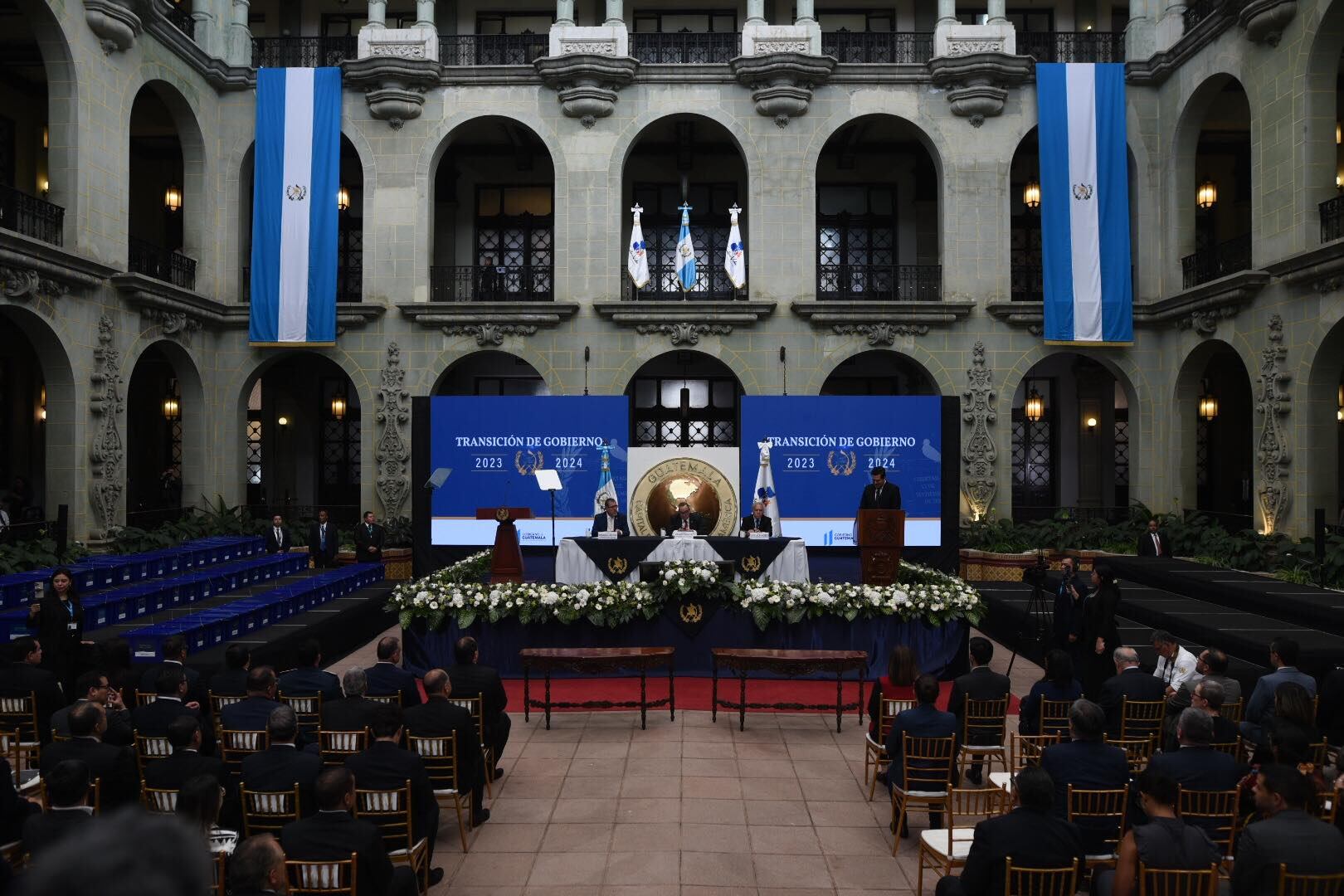 El lunes, 4 de septiembre de 2023, se llevó a cabo la primera reunión entre el presidente de la República, Alejandro Giammattei, y el presidente electo, Bernardo Arévalo, para dar por iniciado el proceso de transición de gobierno.