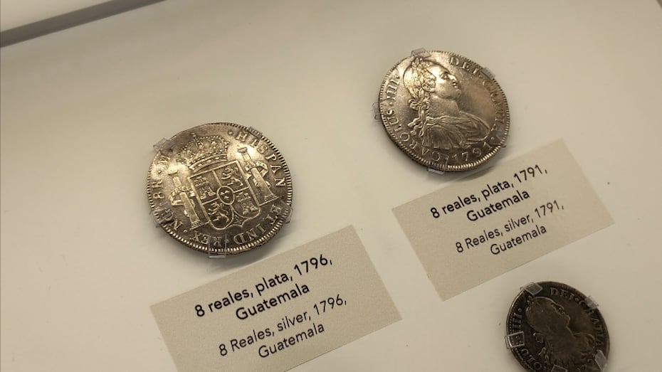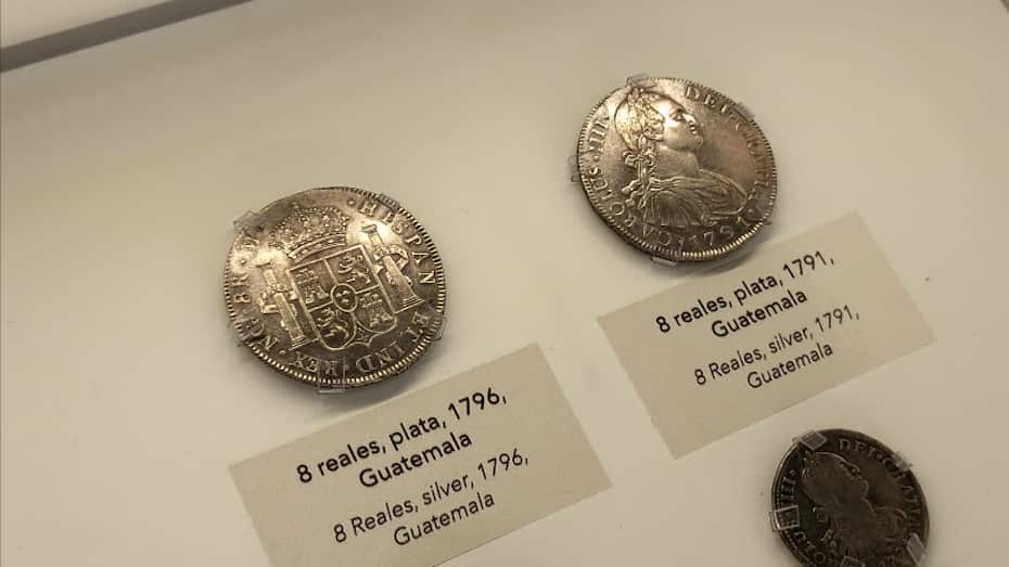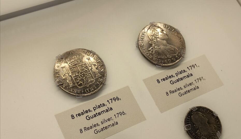 Unas de las piezas que destacan son las monedas del siglo XVIII, específicamente de 1791 y 1796 de una denominación de ocho reales, fabricadas en plata. También, exhiben monedas de cuatro reales y otras del siglo XIX, previo a la independencia.