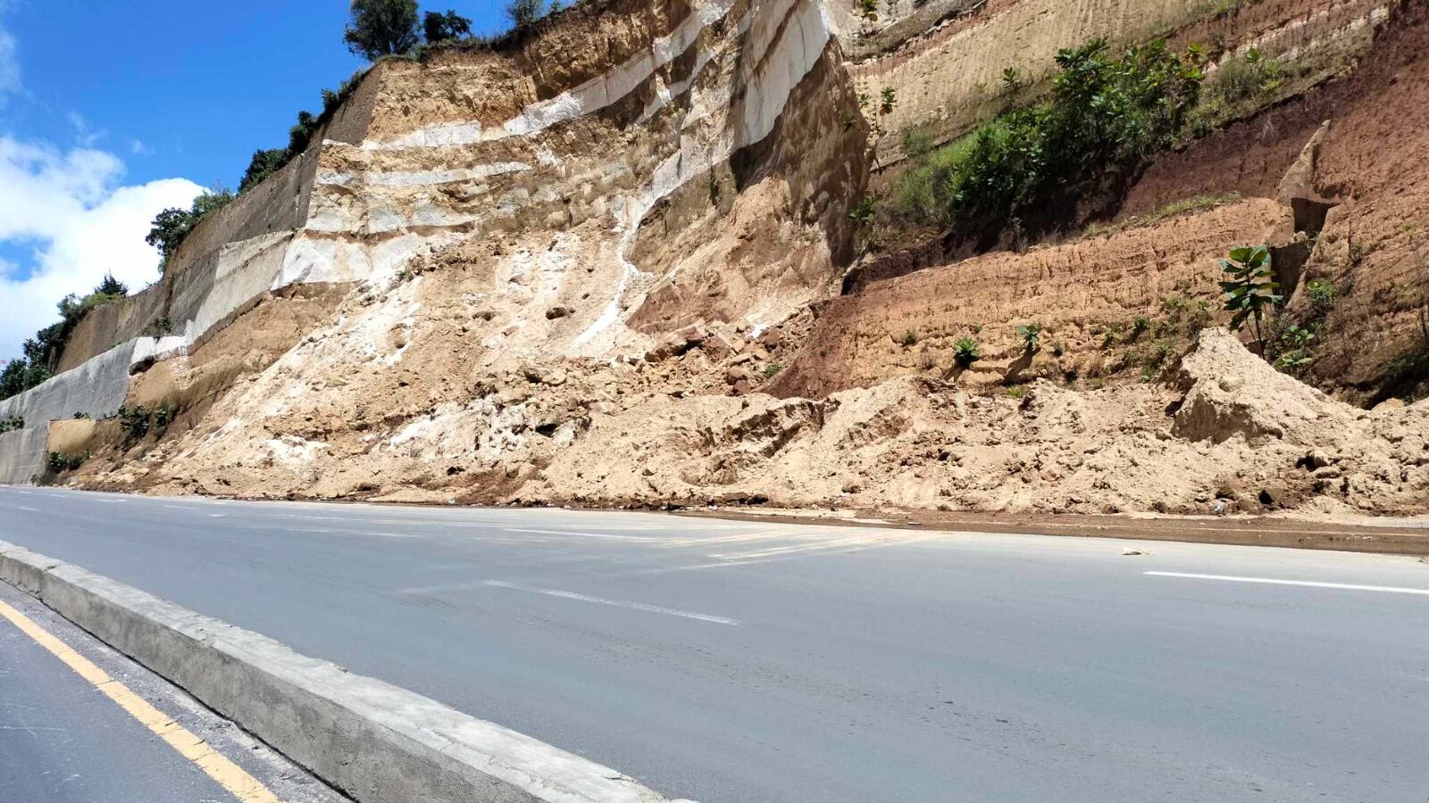 Tres carriles del Libramiento de Chimaltenango están inhabilitados a causa de un nuevo derrumbe.