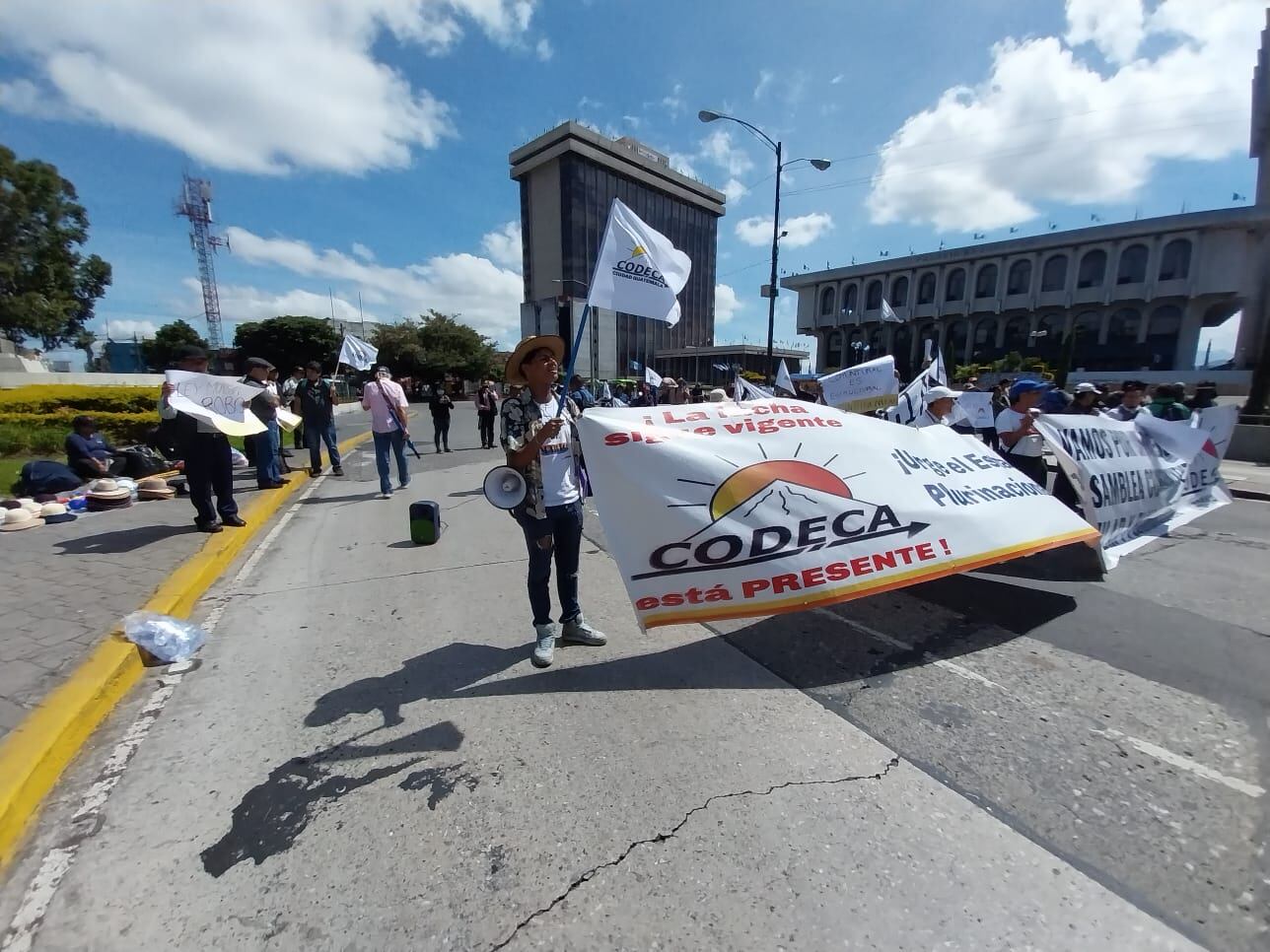 Tal y como lo anunciaron los dirigentes de Codeca, este día realizan manifestaciones y bloqueos en al menos 14 puntos carreteras del país y en el caso de la Ciudad de Guatemala, se ubican en el Centro Cívico.