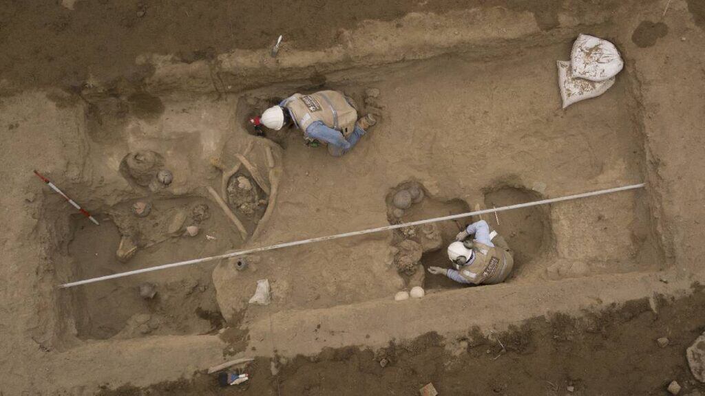 Las tumbas pertenecen a un gran cementerio prehispánico y fueron descubiertas mientras los trabajadores de la empresa de distribución de gas Cálidda removían tierra de una calle del populoso distrito de Carabayllo, en el norte de la capital peruana.