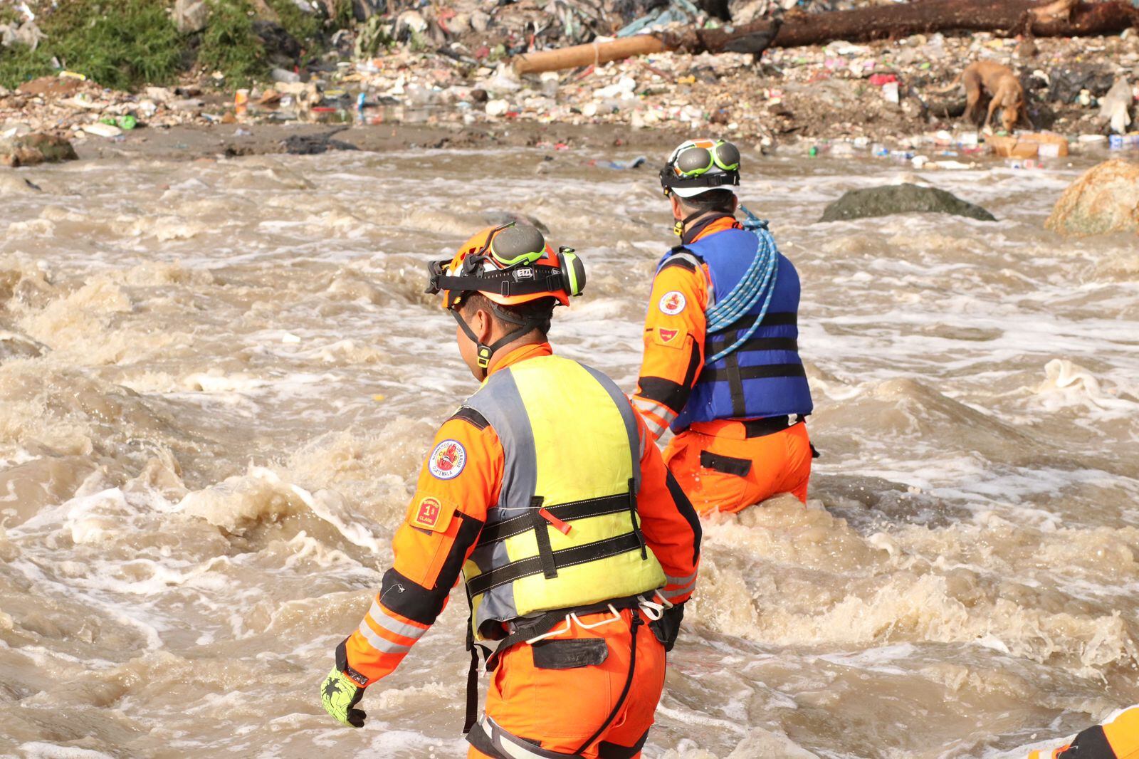 Por tercer consecutivo las brigadas especiales de rescate de Bomberos Voluntarios, Bomberos Municipales y Ejército, realizan las tareas de búsqueda y rescate de las personas desaparecidas en el río que se ubica bajo el puente El Naranjo en la zona 7 de la Ciudad de Guatemala.