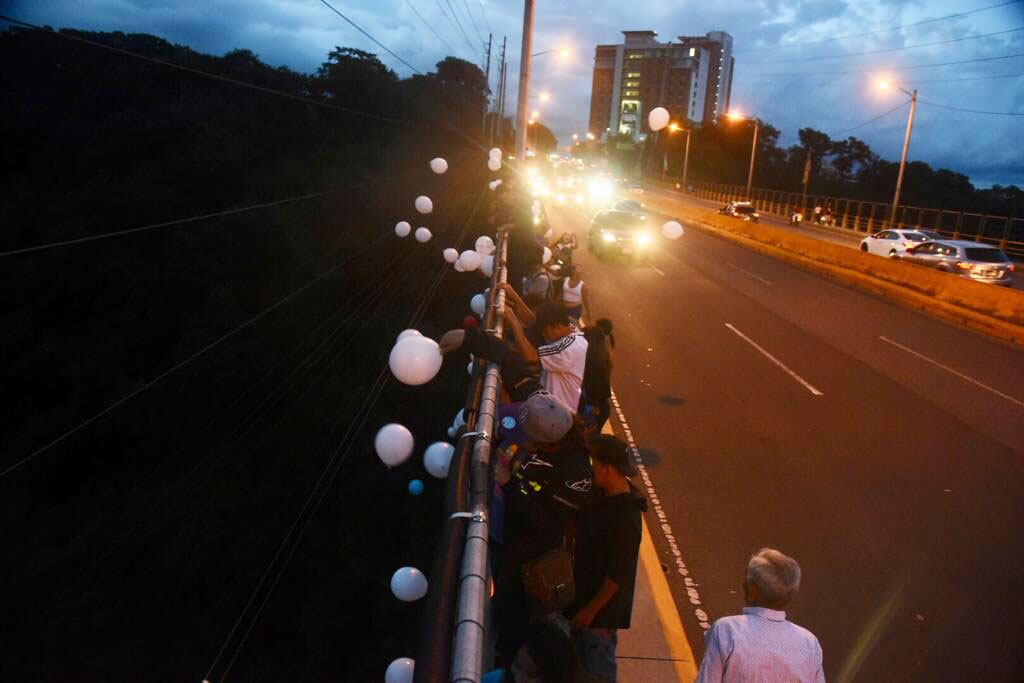Varias decenas de globos blancos fueron liberados en el puente El Naranjo para recordar a las víctimas de la tragedia ocurrida en el asentamiento Dios es Fiel, ubicado debajo de dicha estructura.
