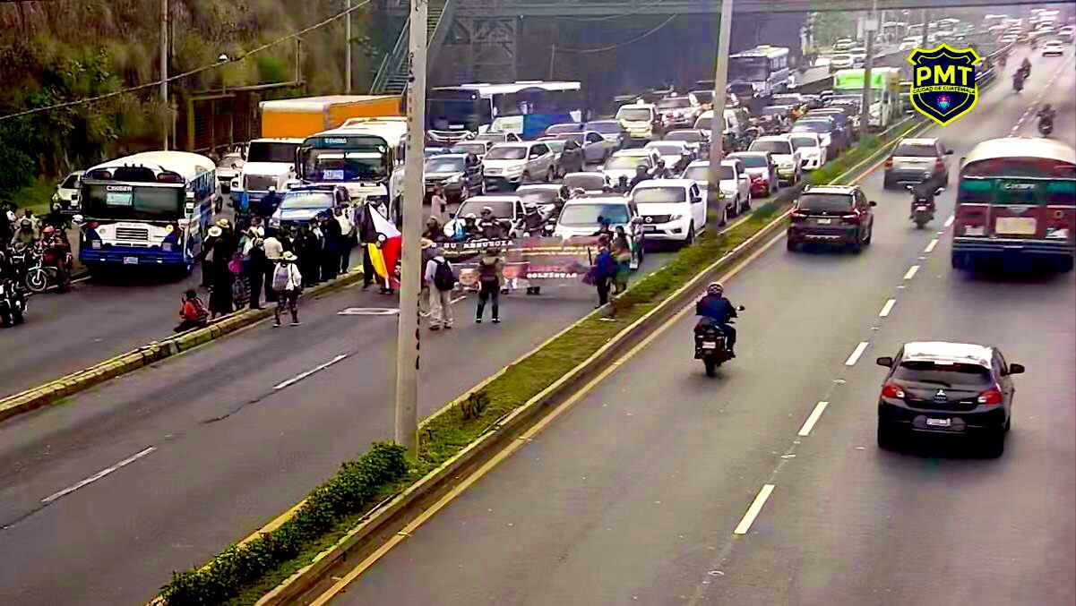 La Policía Municipal de Tránsito de la Ciudad de Guatemala (PMT) informó que un grupo de personas bloquea el paso en el kilómetro 4.4 de la Ruta CA-9 Norte, en la zona 18, con sentido sur occidente. como parte de los bloqueos que se realizan a nivel nacional.
