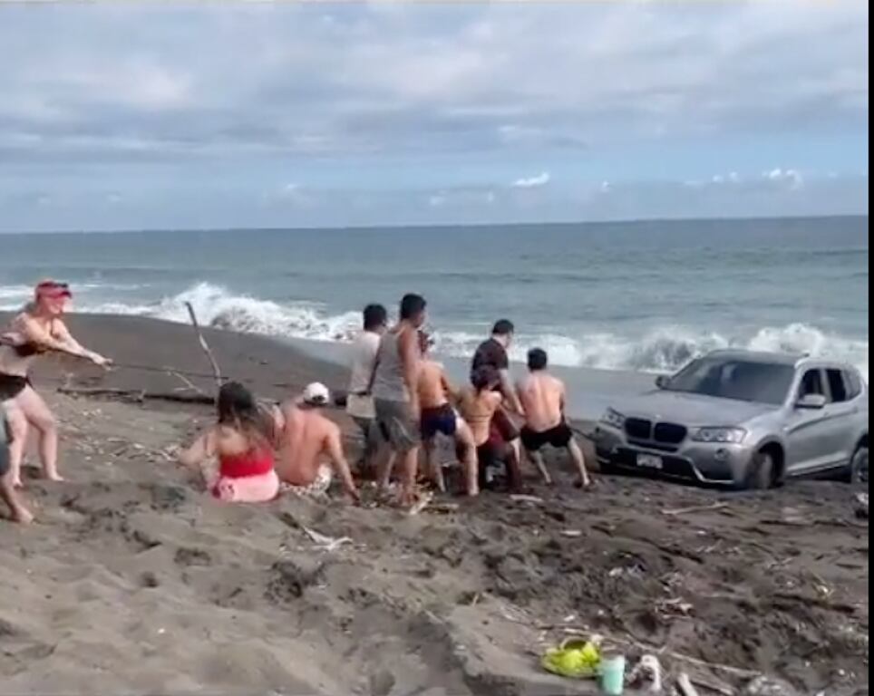 Otro video del carro atorado en la playa de Monterrico