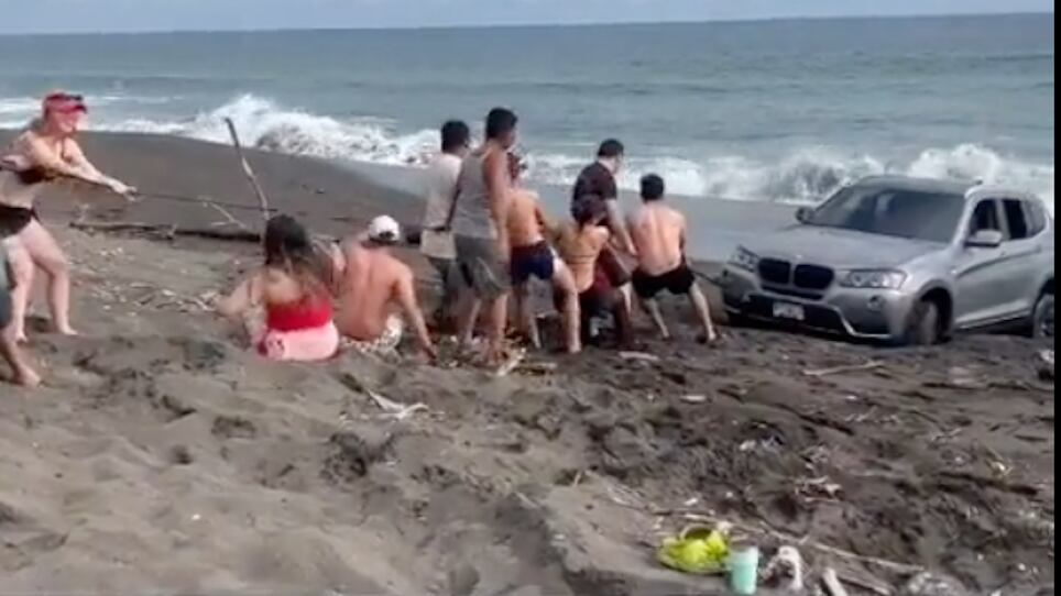 En los videos compartidos en las redes sociales, se puede ver a un grupo de personas tratando de empujar el auto para liberarlo de su prisión de arena. Sin embargo, a pesar de sus esfuerzos y su determinación, el automóvil parecía estar firmemente atrapado.
