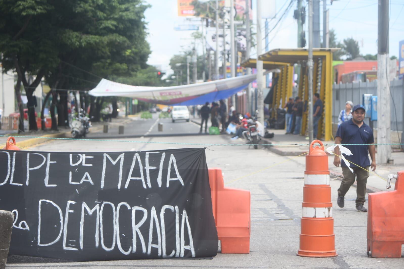 La 32 calle de la avenida Petapa permanece bloqueada por segundo día consecutivo por estudiantes y trabajadores de la Universidad de San Carlos de Guatemala (USAC).