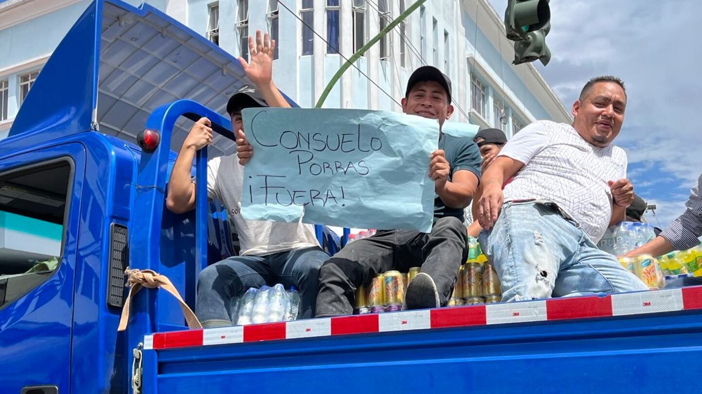Este domingo 8 de octubre, una caravana formada por vendedores del mercado La Terminal se dirigió por la séptima avenida de la zona 1 hasta llegar a las afueras del Ministerio Público (MP), donde se sumaron a las protestas que se están realizando desde el lunes 2 de octubre.