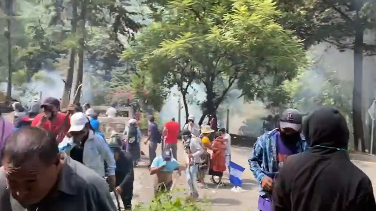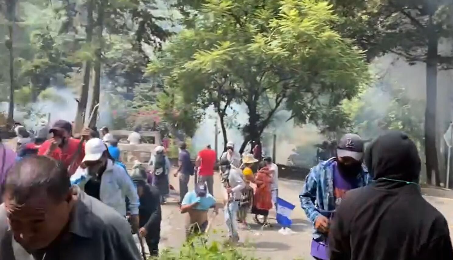 Miembros de la Policía Nacional Civil (PNC) y de la Policía Militar desalojaron a un grupo de manifestantes que mantenían un bloqueo en el acueducto Xayá Pixcayá, Zaragoza, Chimaltenango.