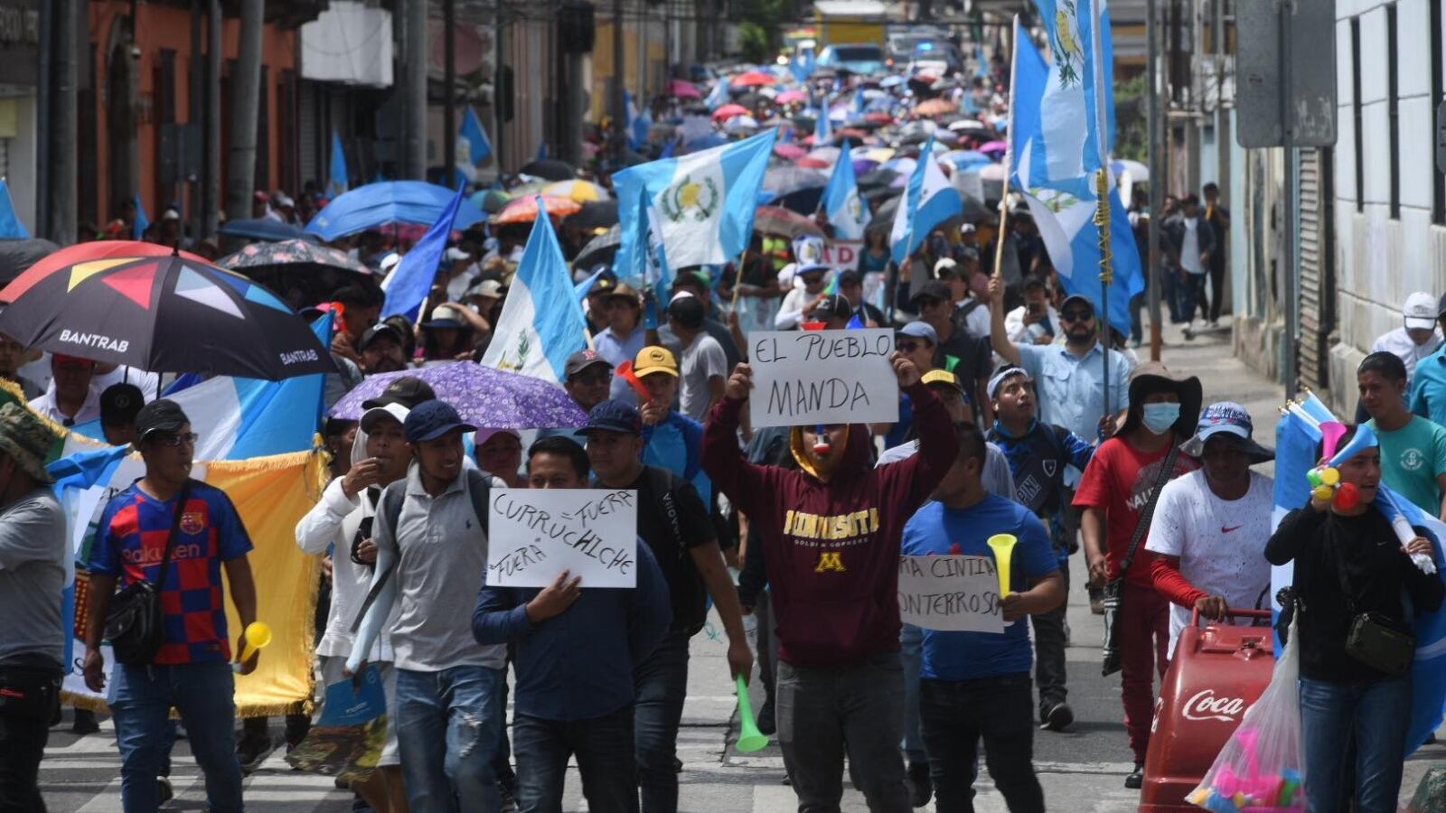 Vendedores de distintos mercados de la Ciudad de Guatemala, realizaron una nueva manifestación este miércoles 11 de octubre, para exigir la renuncia de la fiscal general, Consuelo Porras y del jefe de la Fiscalía Especial Contra la Impunidad (FECI) Rafael Curruchiche, la fiscal Cinthia Monterroso y el juez Fredy Orellana.